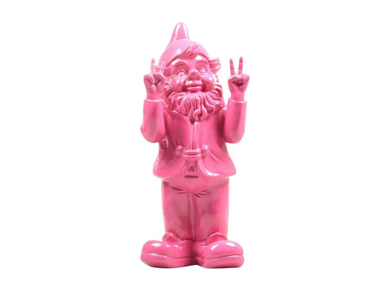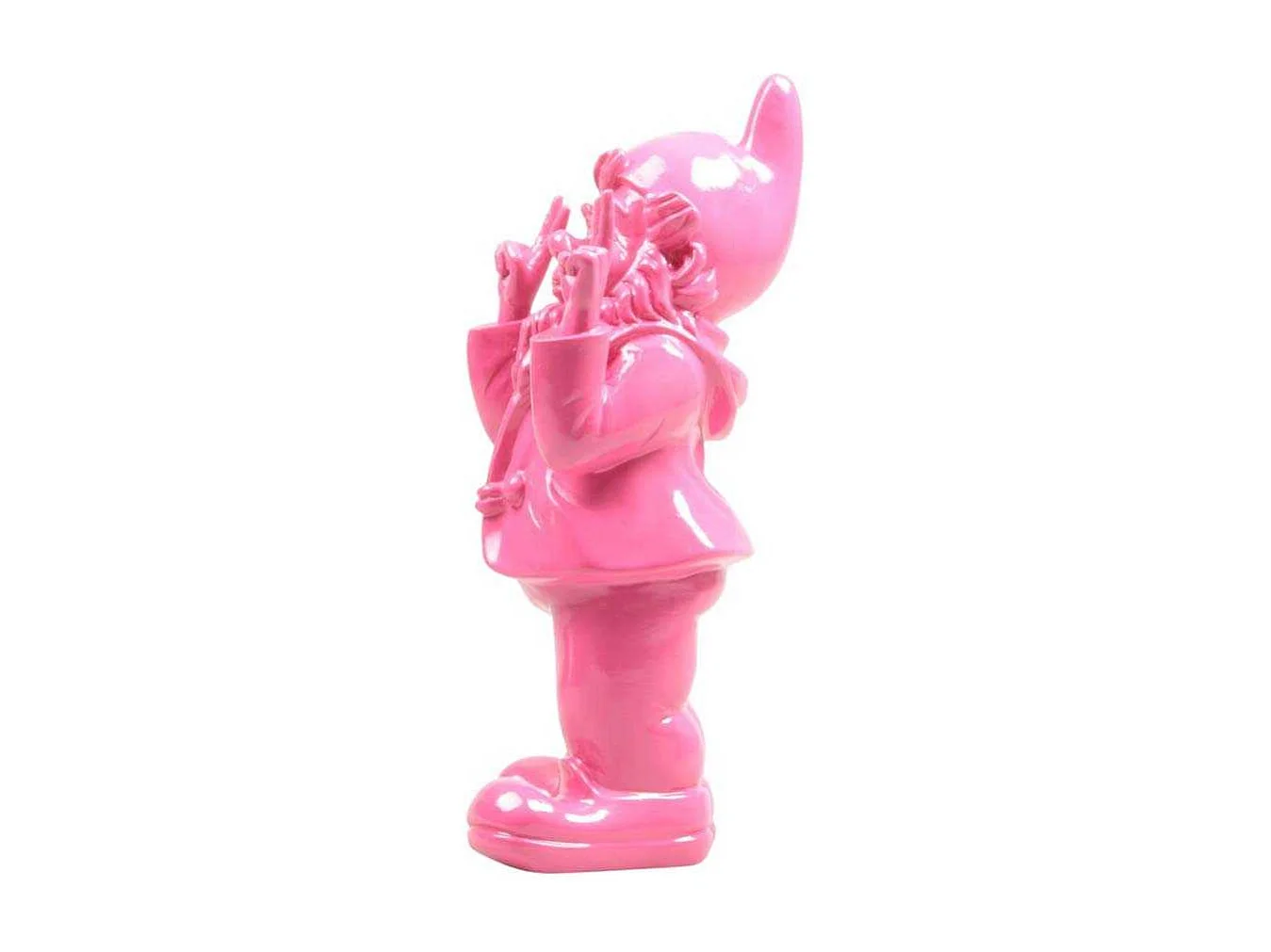 Nain de jardin en résine doigt d'honneur 7 x 8 x 20 cm Rose fuschia