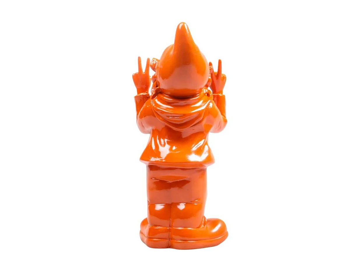 Nain de jardin en résine doigt d'honneur 7 x 8 x 20 cm Orange