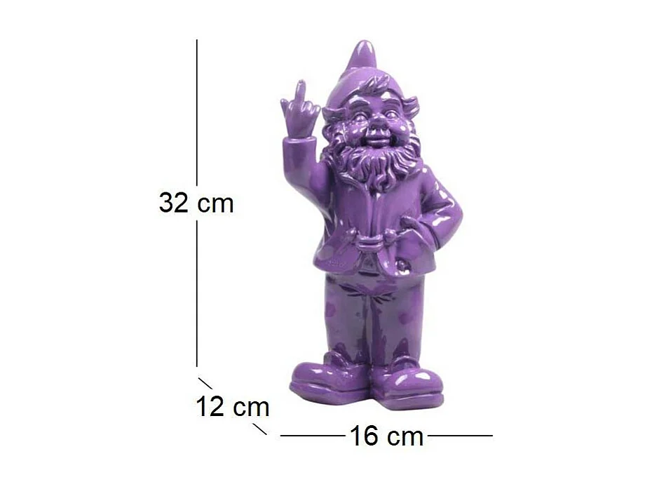 Nain de jardin en résine doigt d'honneur 7 x 8 x 20 cm Violet