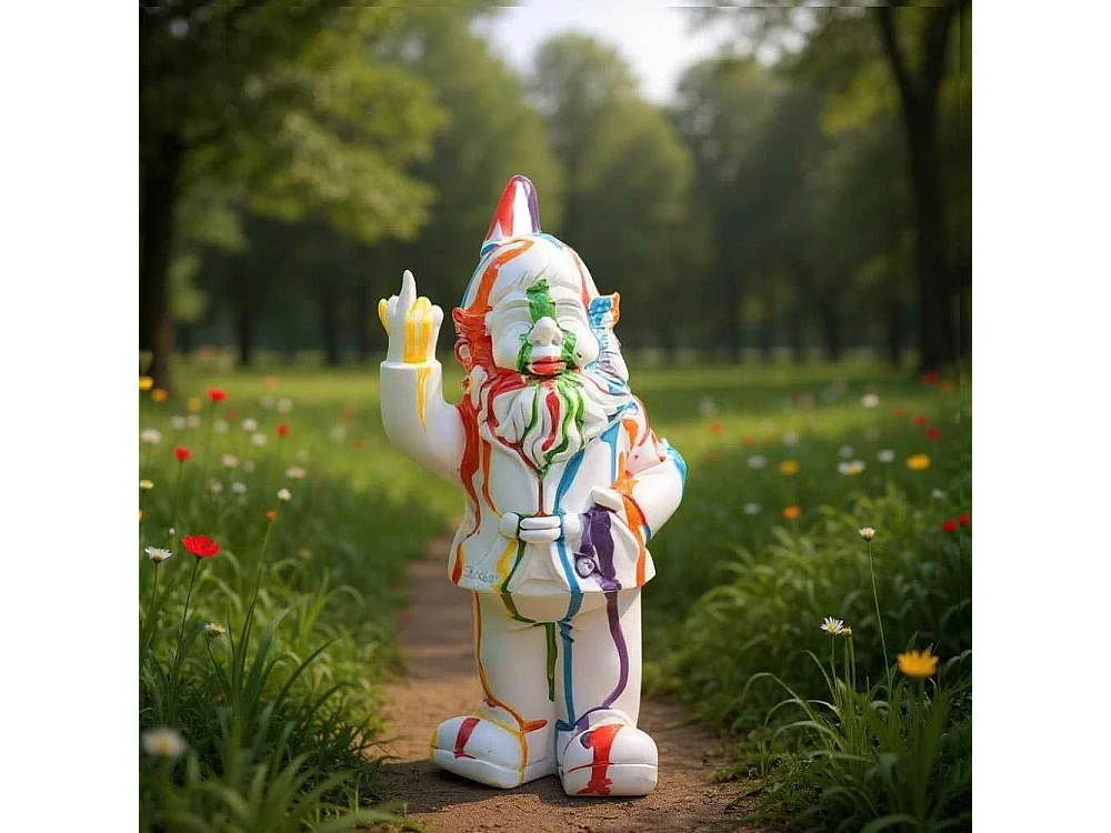 Nain de jardin en résine doigt d'honneur 7 x 8 x 20 cm Multicolore