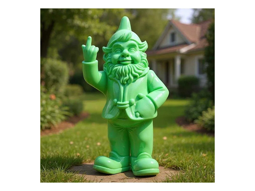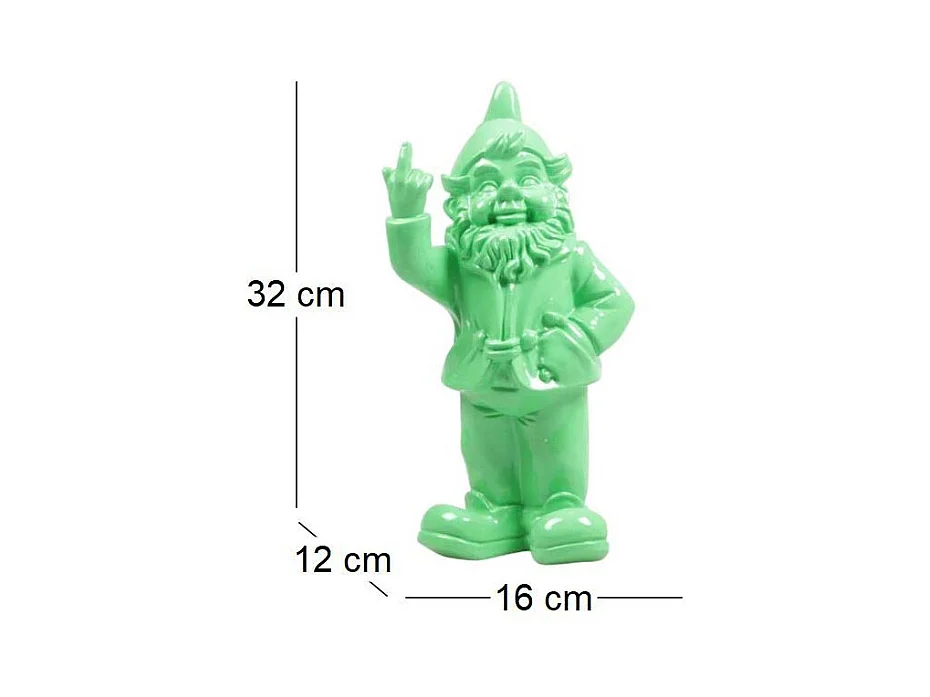 Nain de jardin en résine doigt d'honneur 7 x 8 x 20 cm Vert