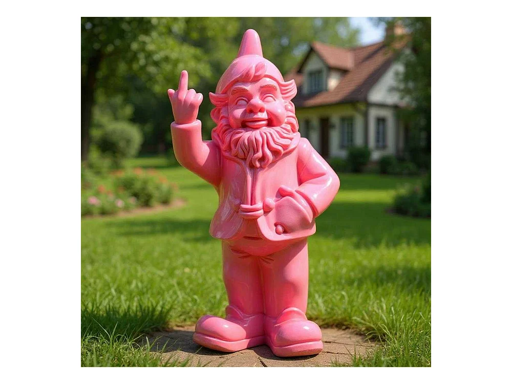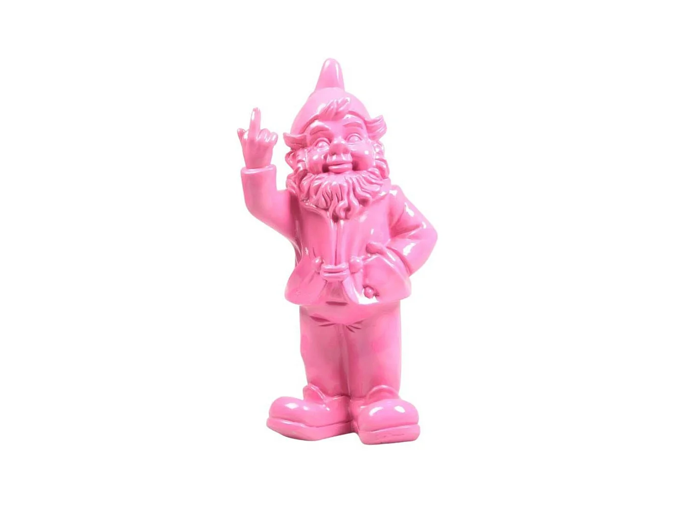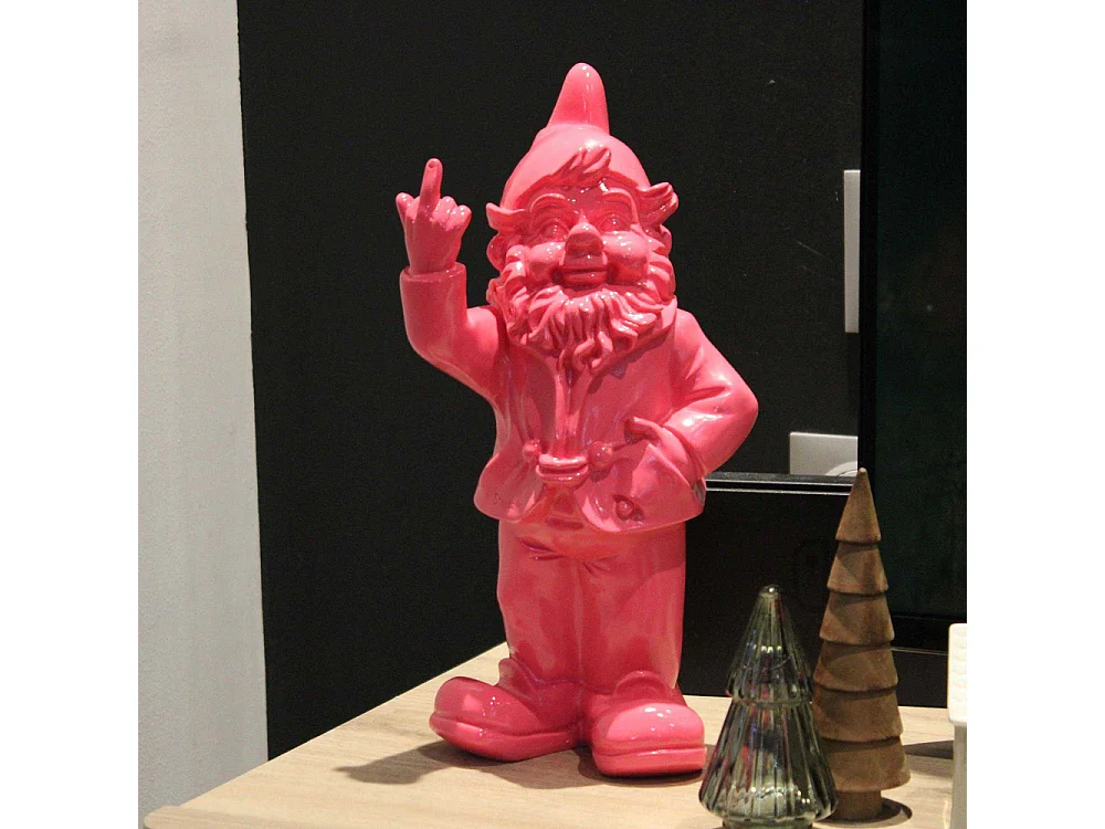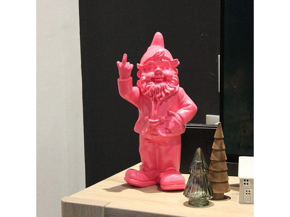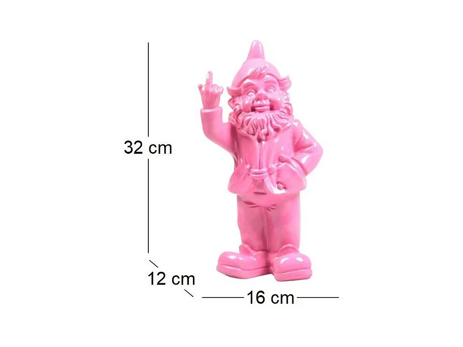 Nain de jardin en résine doigt d'honneur 7 x 8 x 20 cm Rose fuschia