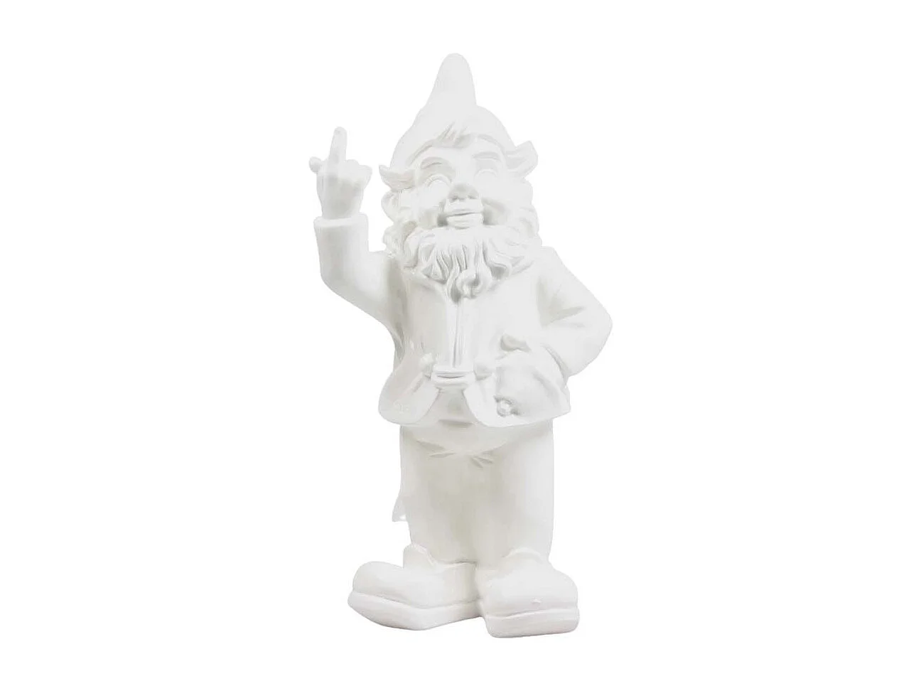 Nain de jardin en résine doigt d'honneur 7 x 8 x 20 cm Blanc