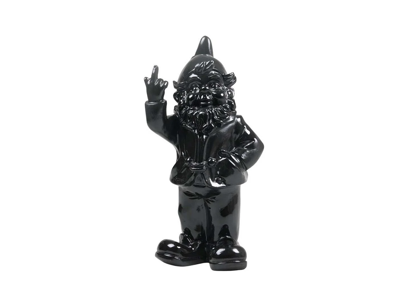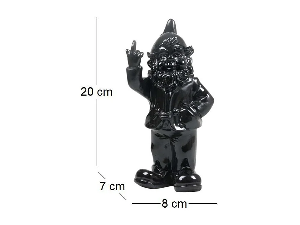 Nain de jardin en résine doigt d'honneur 7 x 8 x 20 cm Noir