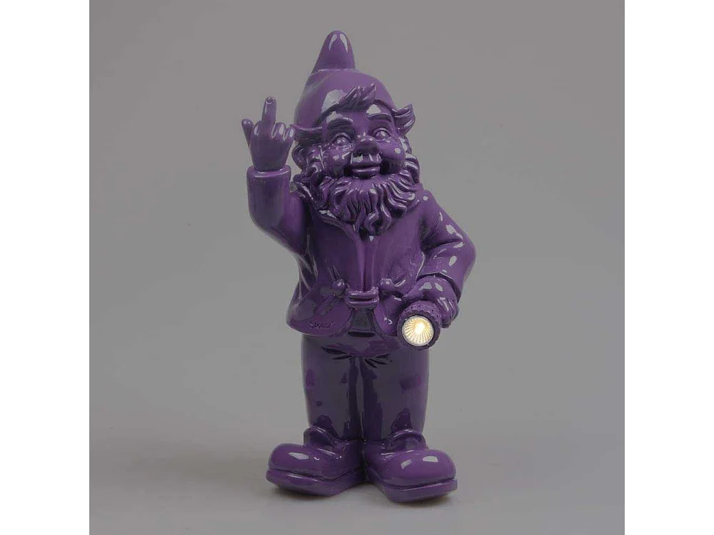 Nain de jardin en résine doigt d'honneur 7 x 8 x 20 cm Violet