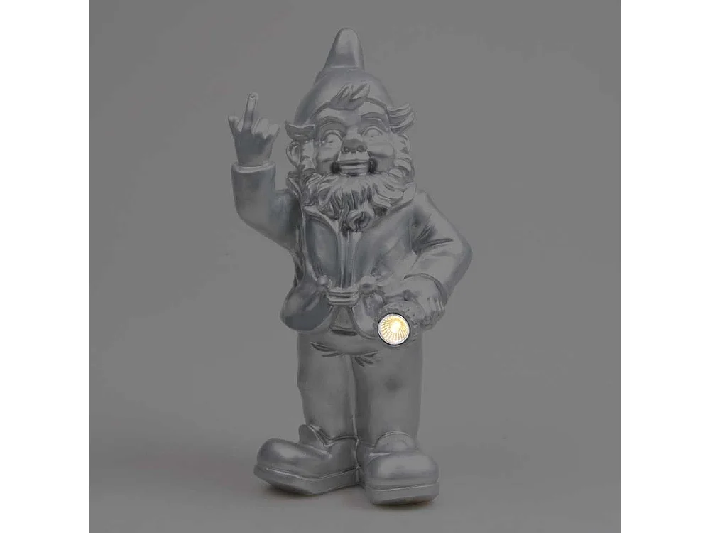 Nain de jardin en résine F*ck avec éclairage solaire 16 x 12 x 31 cm