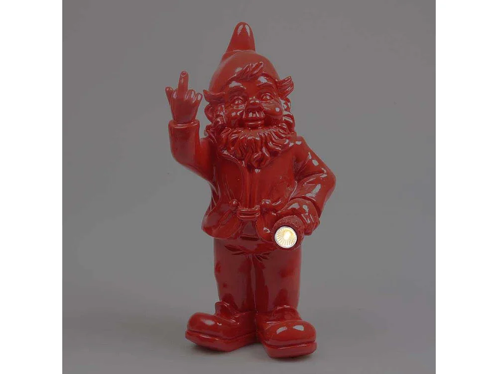 Nain de jardin en résine doigt d'honneur 7 x 8 x 20 cm Rouge