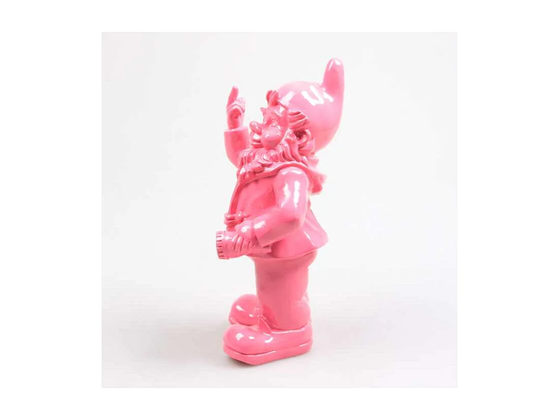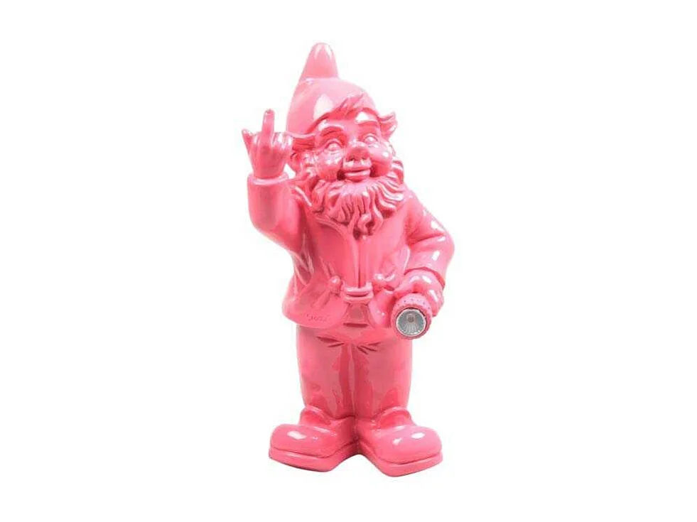 Nain de jardin en résine doigt d'honneur 7 x 8 x 20 cm Rose fuschia