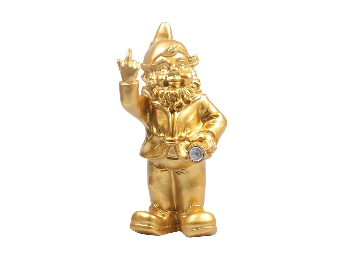 Nain de jardin en résine doigt d'honneur 7 x 8 x 20 cm Doré