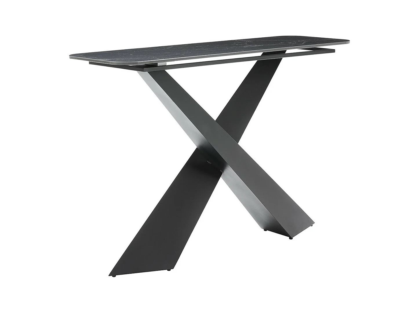 NAJMA - Console Plateau Céramique Marbré Noir Pieds Métal Noir