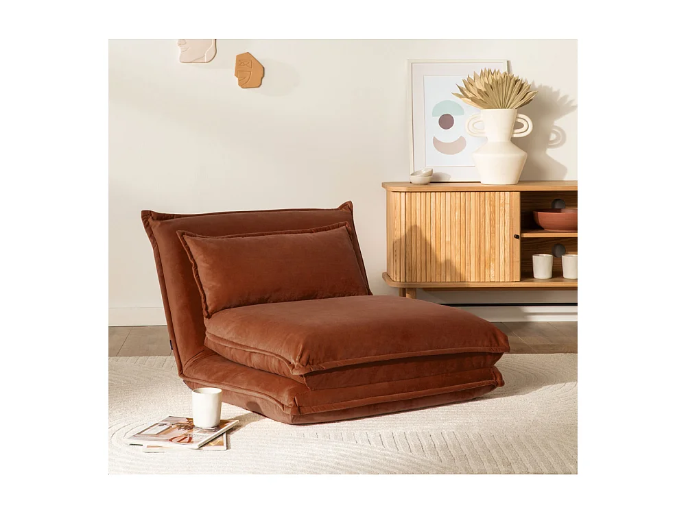 Nala - Chauffeuse convertible 1 place en velours - Rouille
