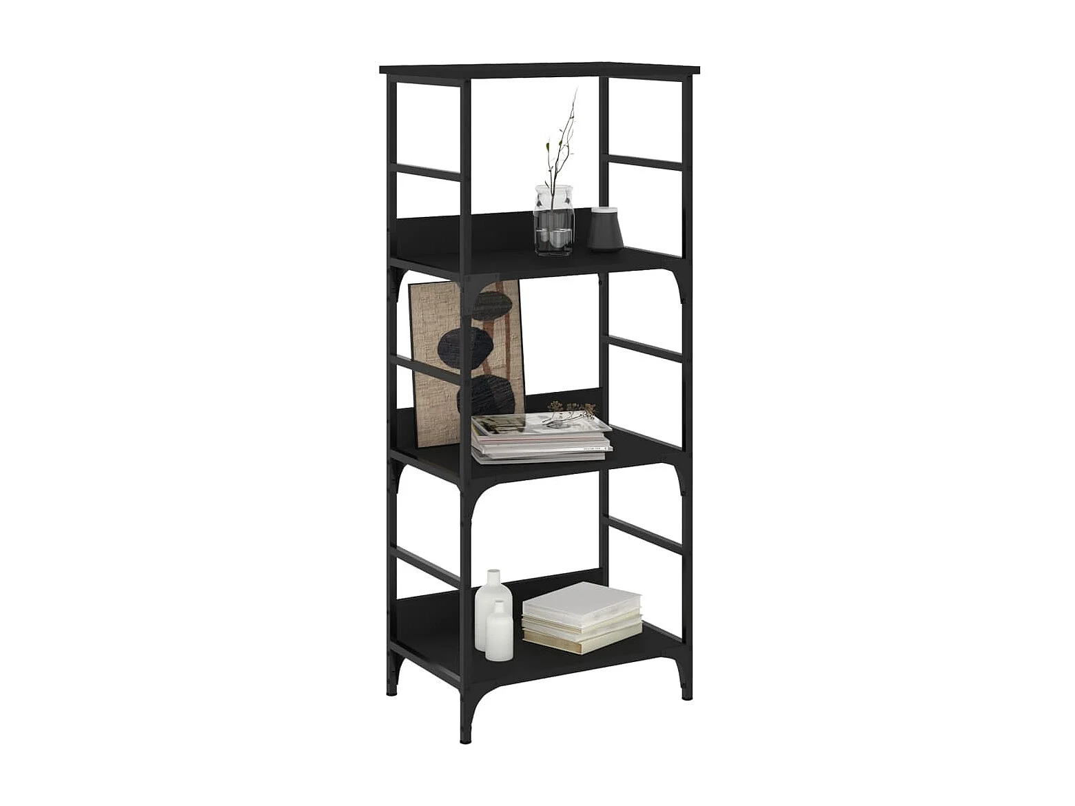 Central Islip Bibliothèque à 4 niveaux noir 35x30x138,5 cm bois d'ingénierie