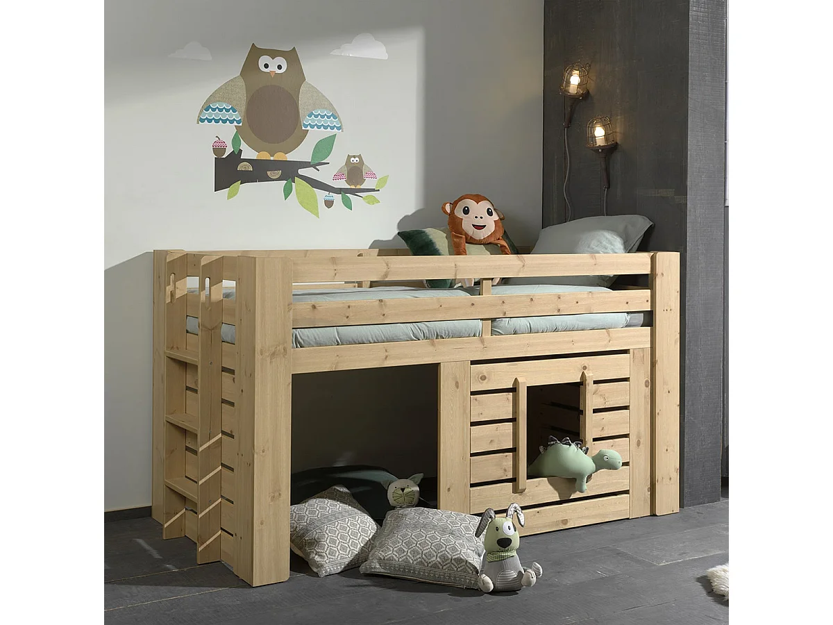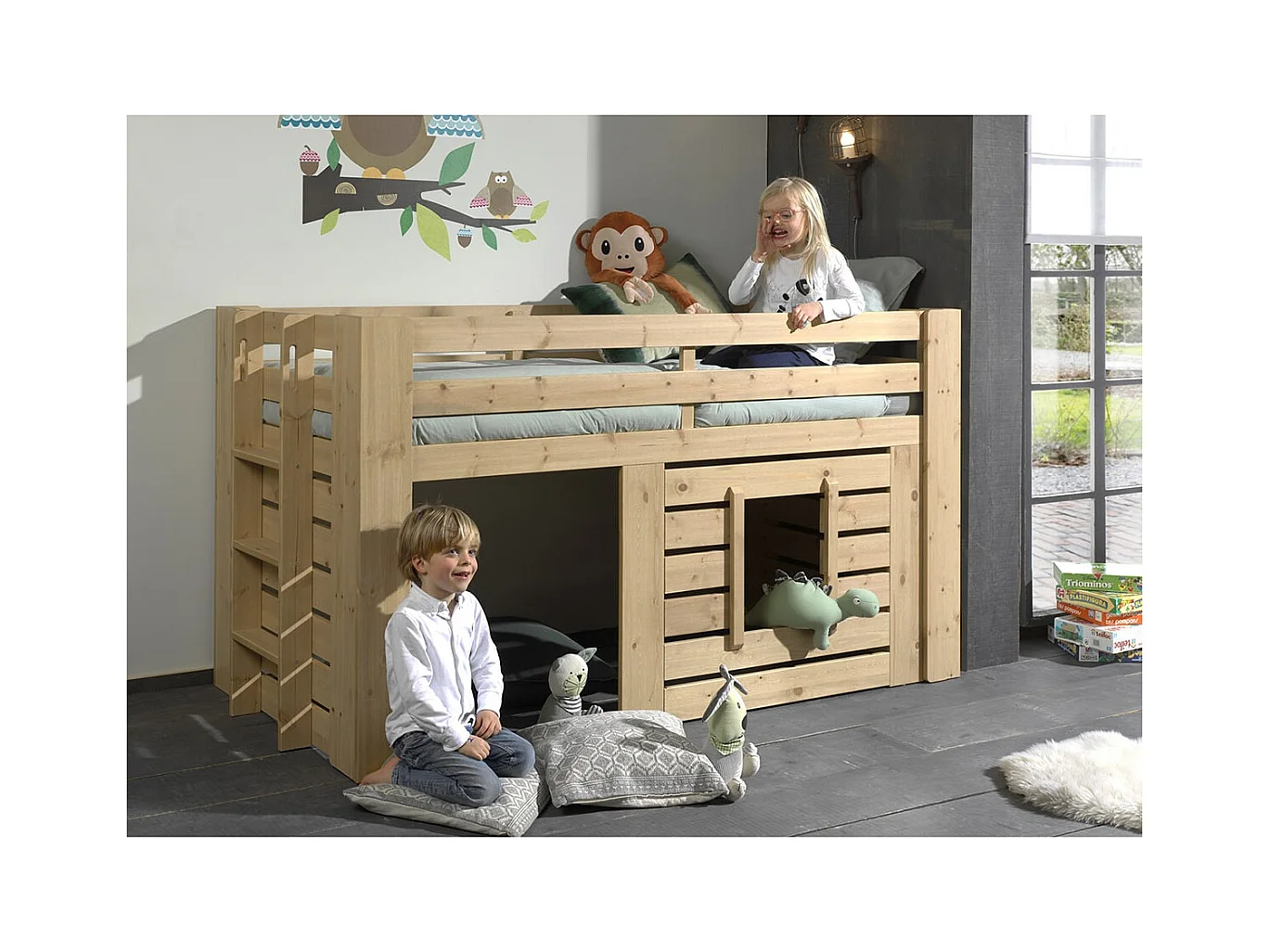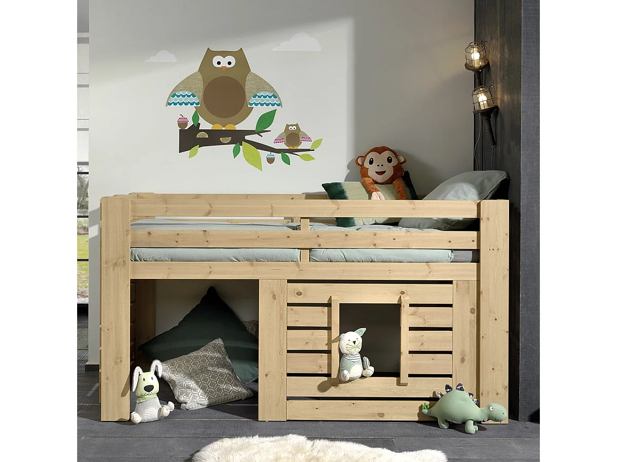 NANA - Lit Surélevé Cabane 90x200cm en Pin Massif