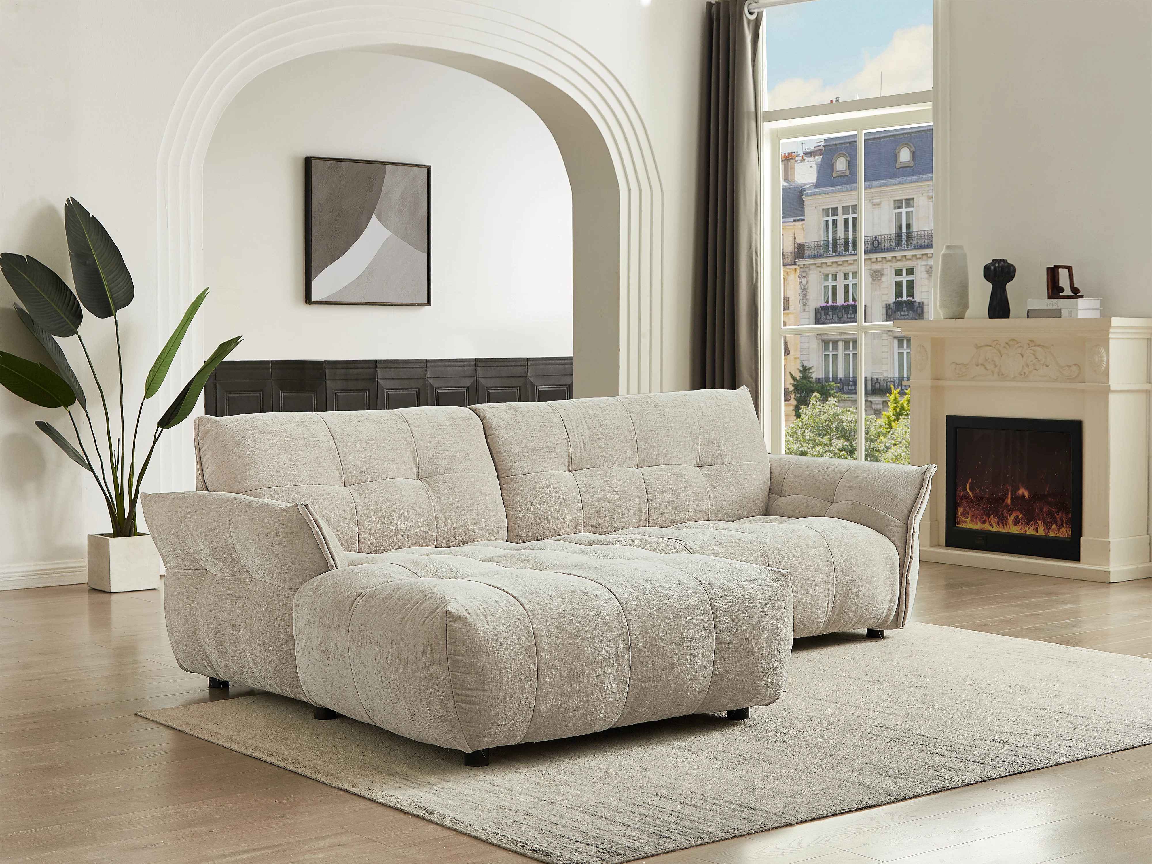 Canapé d'angle gauche en tissu chiné beige NAPIZO