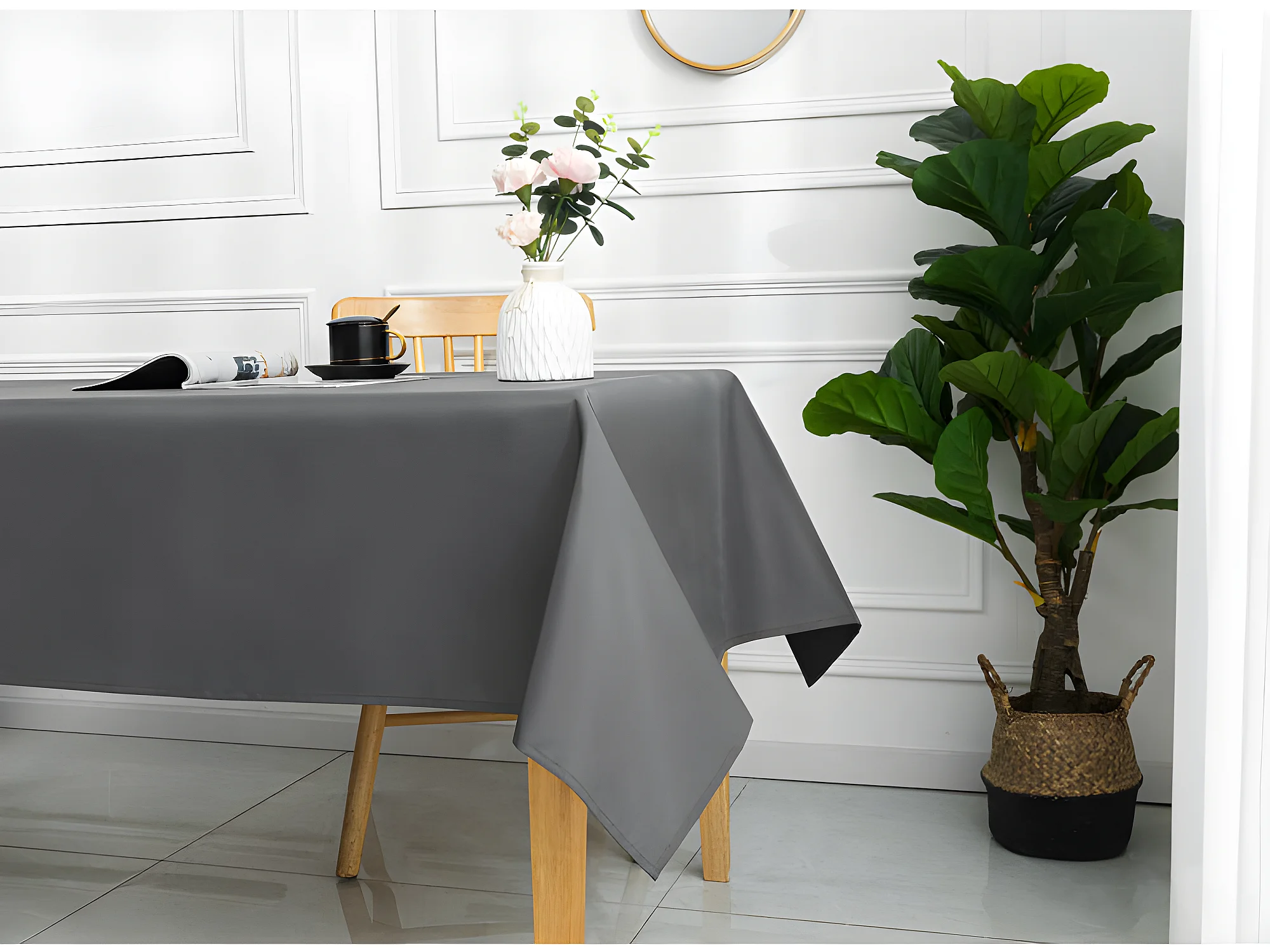 Nappe anti-tâches carrée 180x180 cm ALIX gris, par Soleil d'Ocre