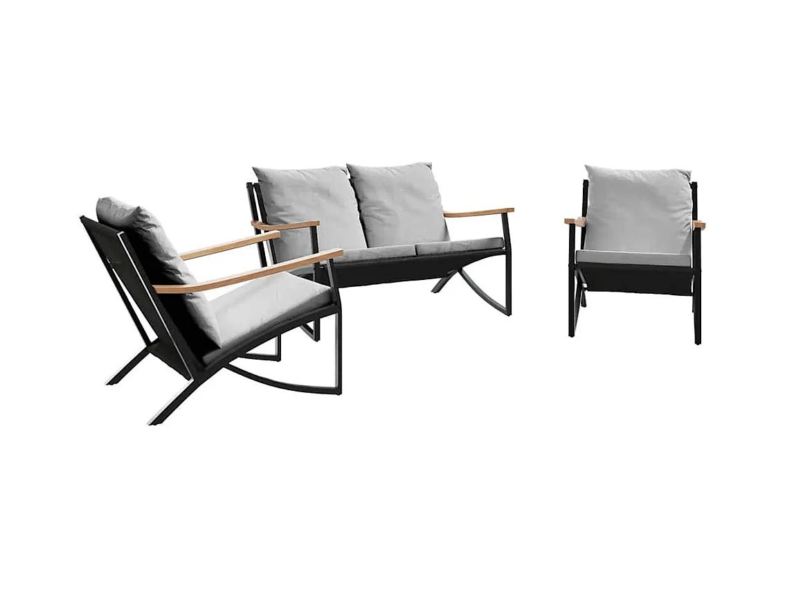Nathan James Ensemble de meubles de balcon avec coussins 3 pcs noir acier