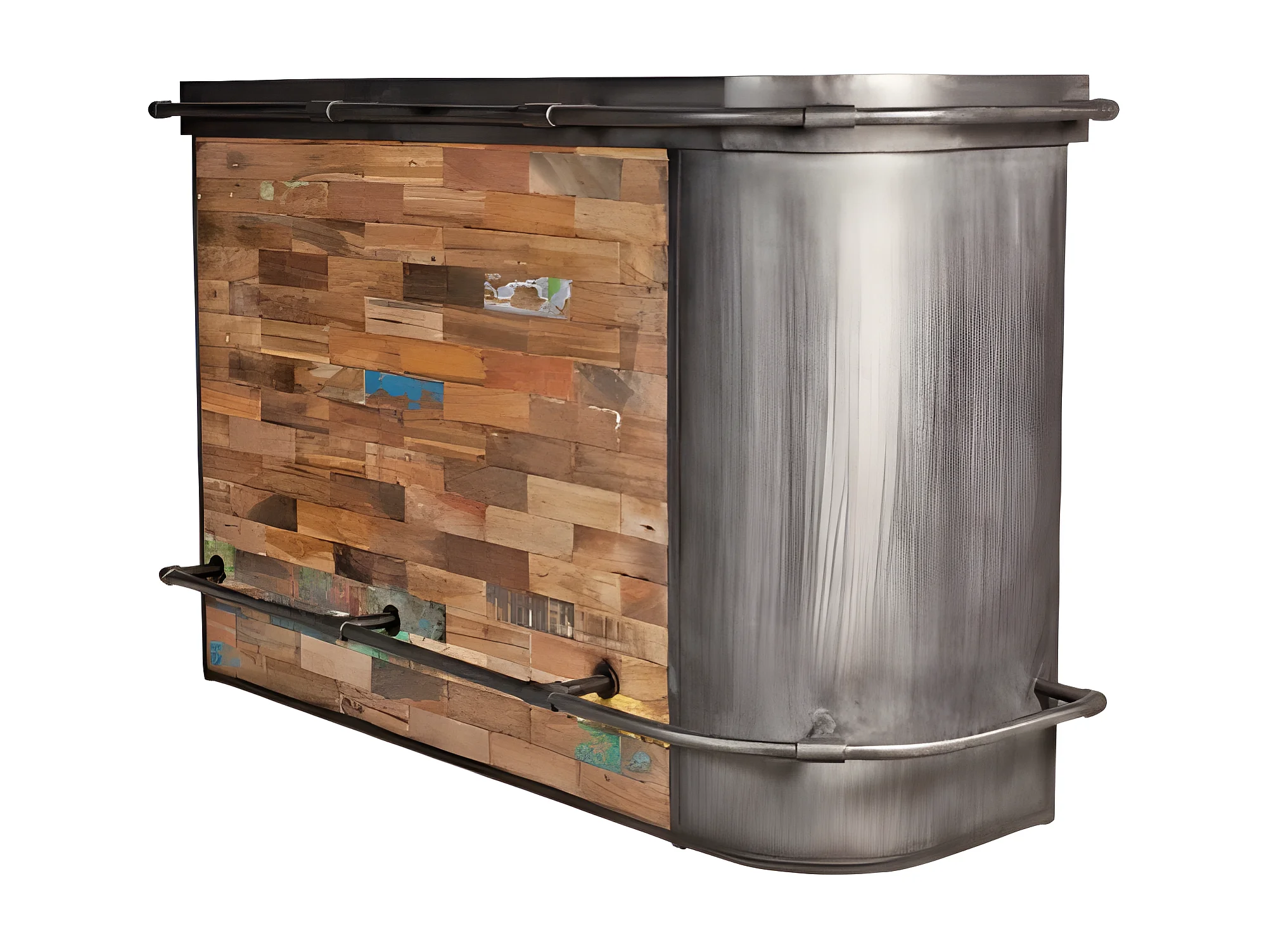 Nautical bar central angle droit en bois de bateau recyclé - Métal noir - Style industriel - L164