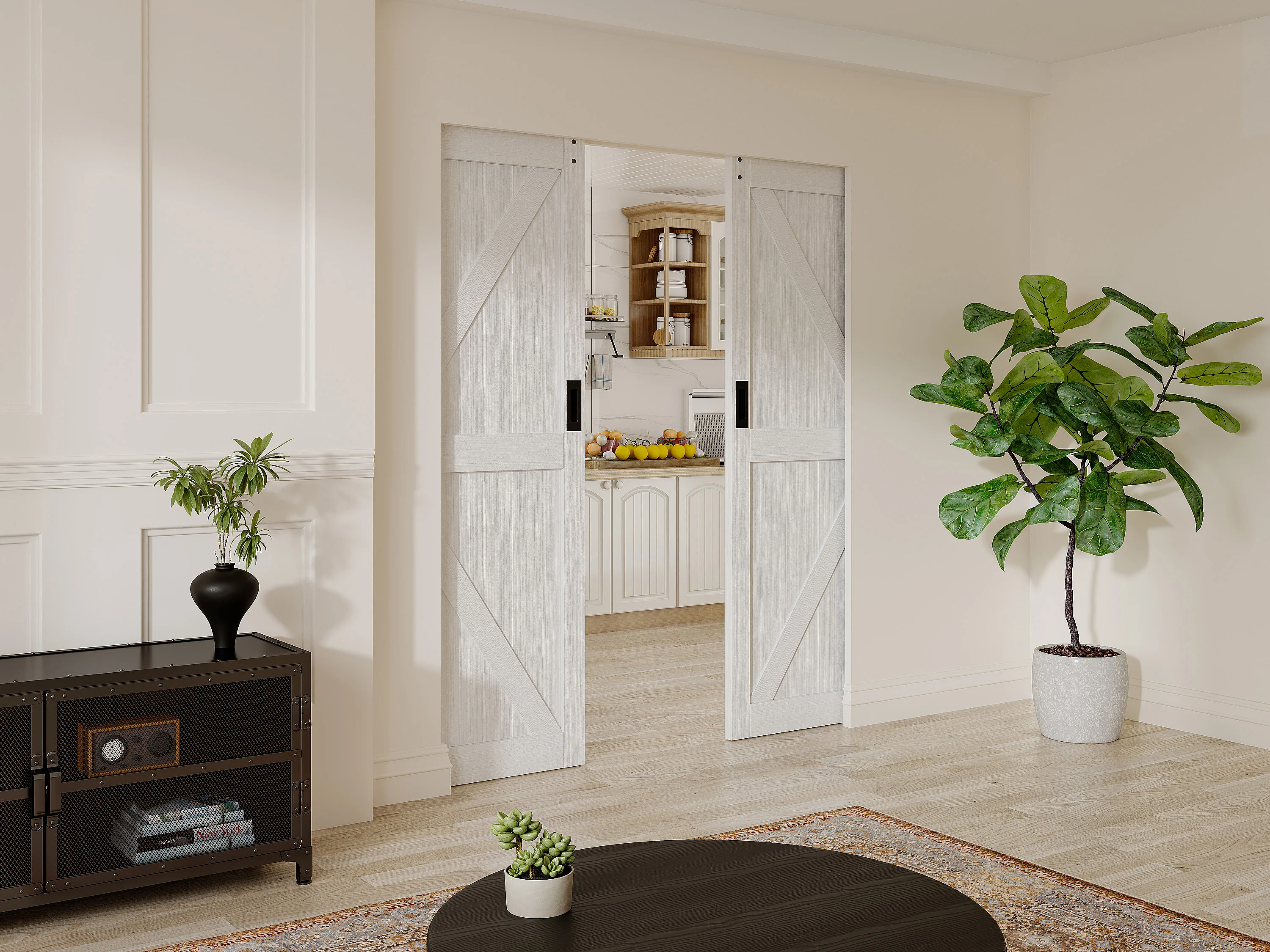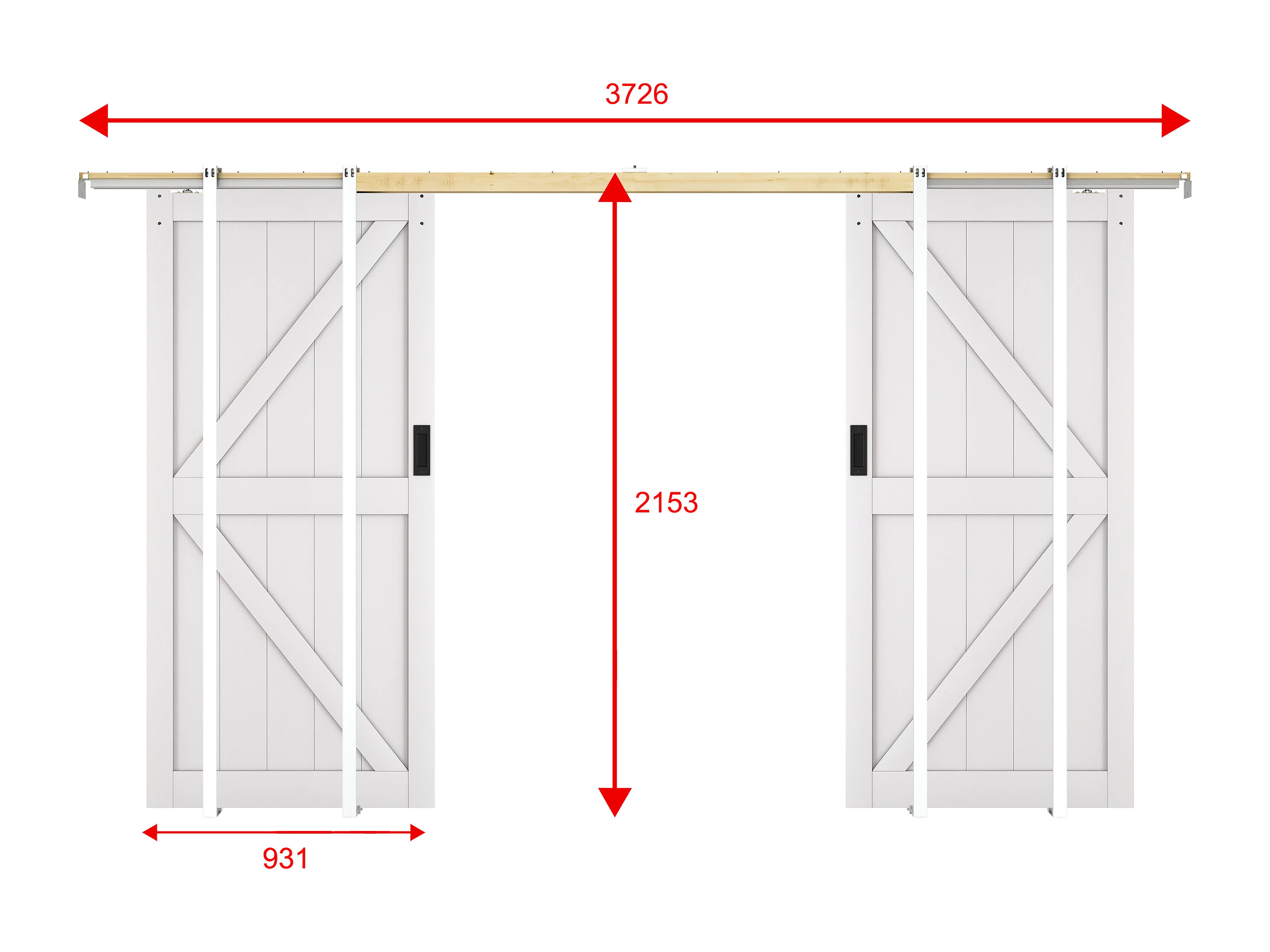 Porte coulissante double avec système à galandage en bois et MDF - blanc - 2 x H205 x 93 cm - NEFARA