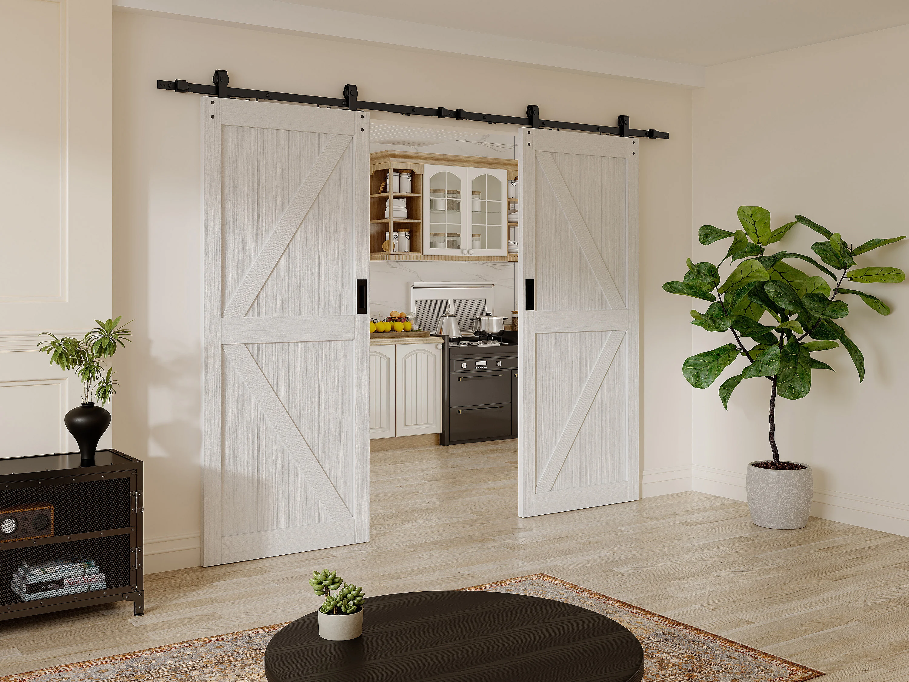 Porte coulissante double avec système en applique - Bois et MDF - blanc - 2 x H205 x 83 cm - NEFARA