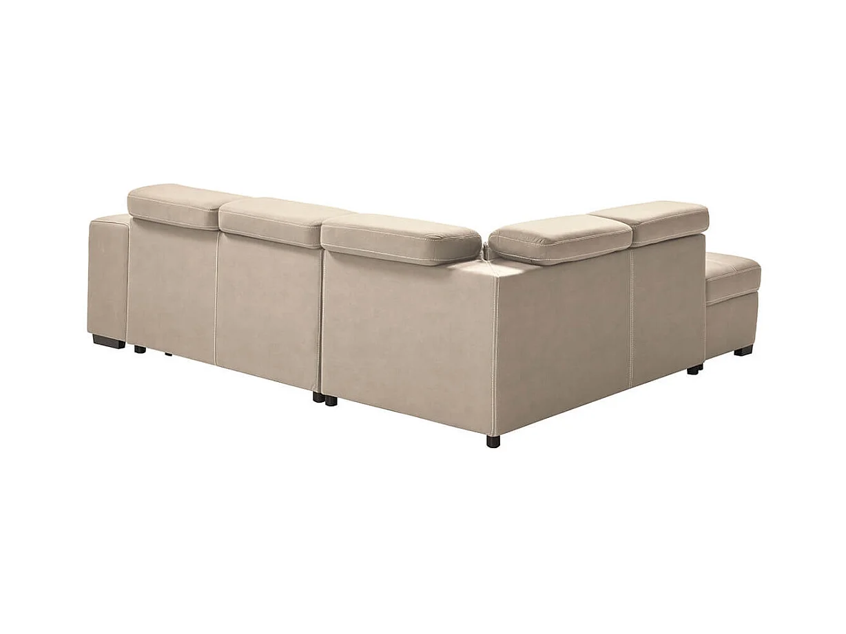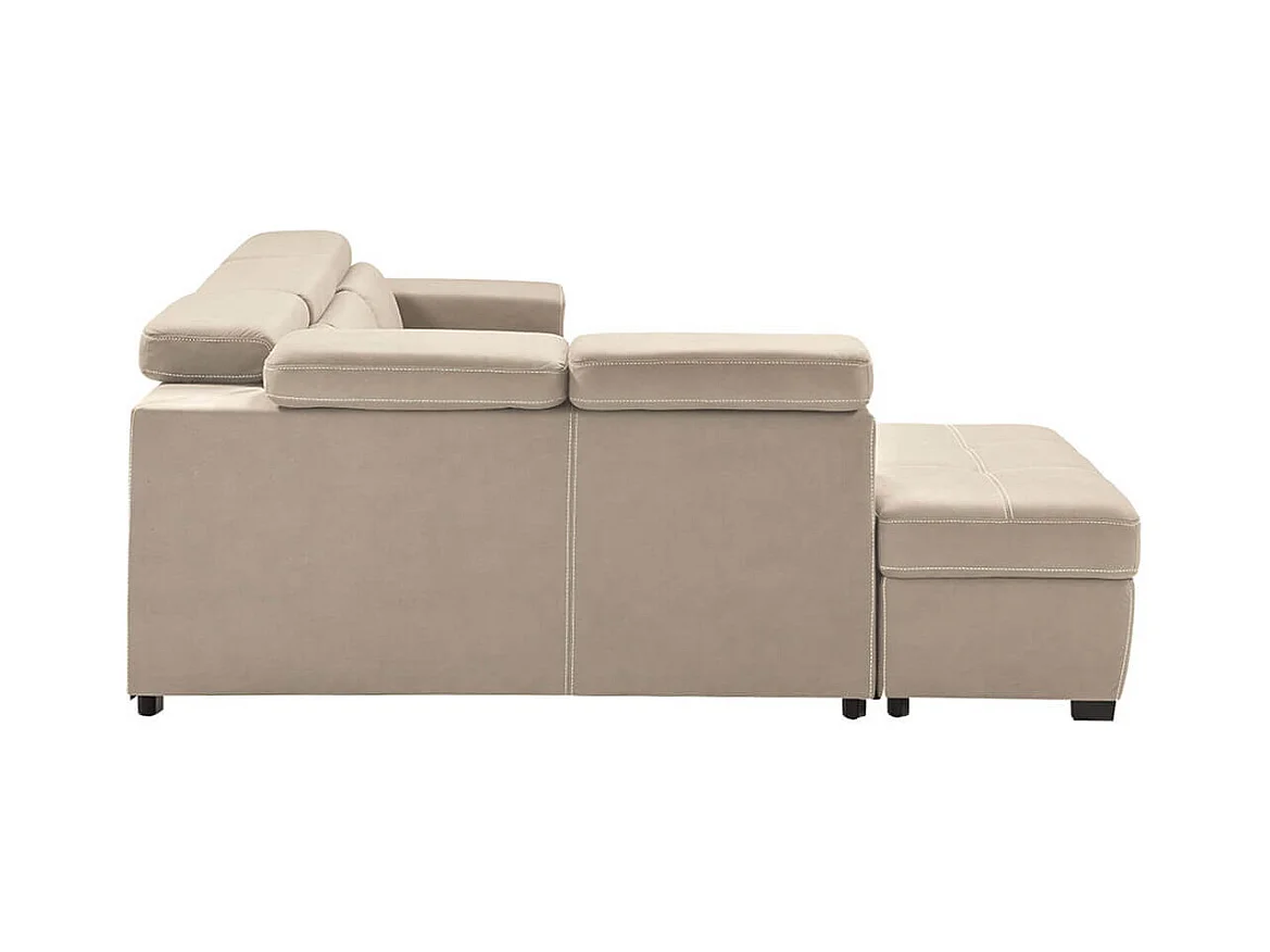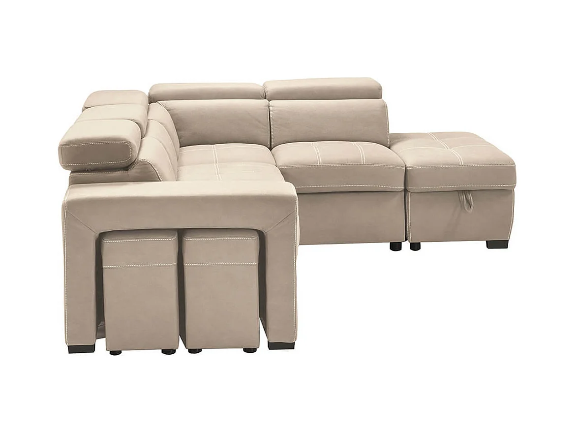 NERA - Canapé d'Angle Gauche Convertible avec 2 Poufs et 1 Coffre Beige