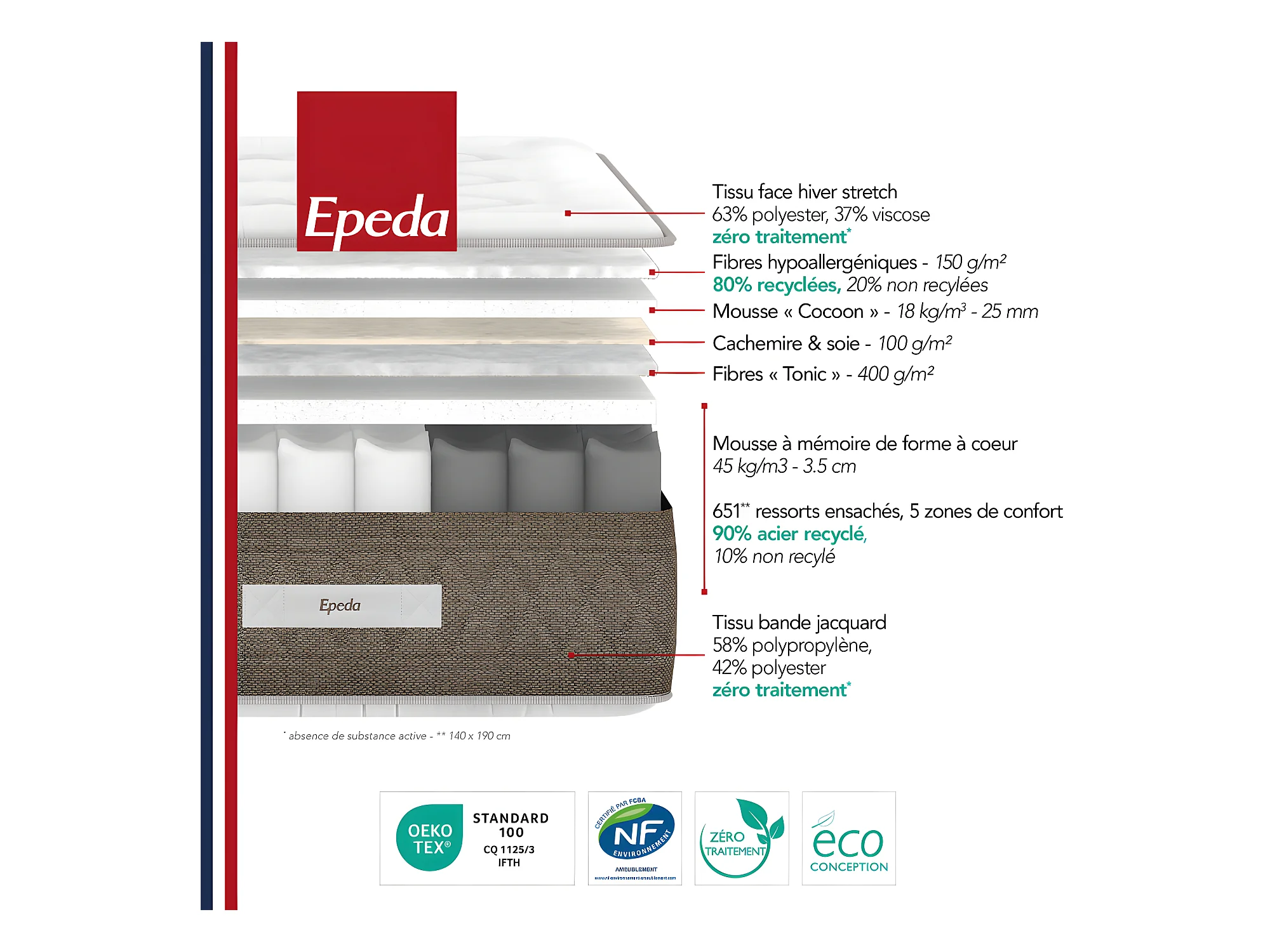 Néréide - Matelas 100% ressorts à mémoire de forme, épaisseur 28cm, accueil moelleux - 140x190 cm