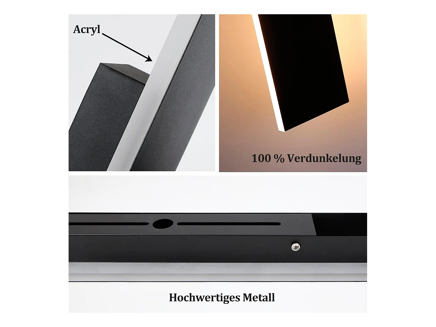 NETTLIFE Applique Murale LED Applique Couloir Intérieur 3000K Blanc Chaud Noir Lampe de Couloir Design Moderne Acrylique Lampe de Lit 6W