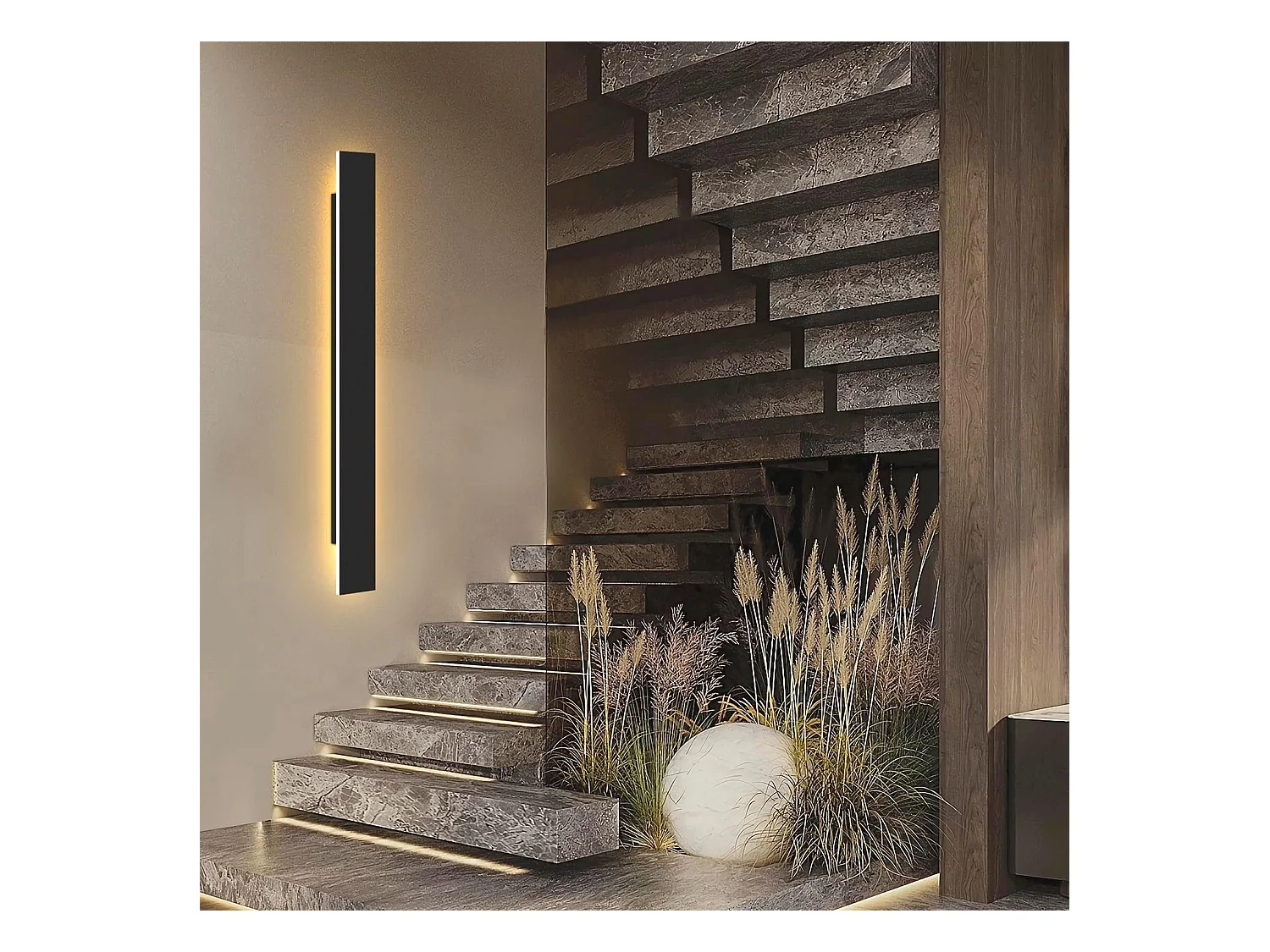 NETTLIFE Applique murale d'intérieur LED - Chambre moderne 100 cm lampe de couloir blanc chaud 31 W lampe d'escalier noire éclairage mural