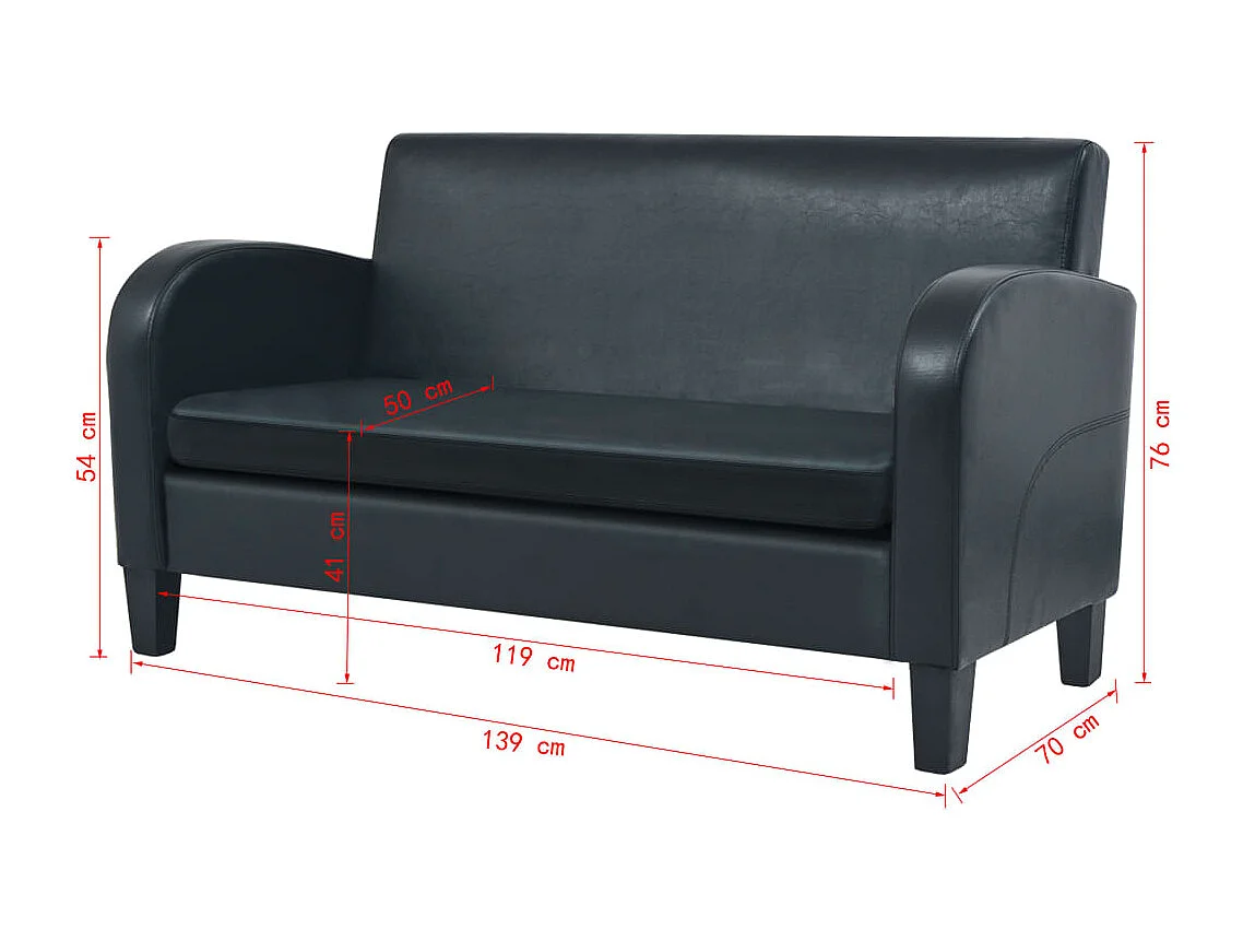NETTLIFE Canapé à 2 places Cuir synthétique Noir