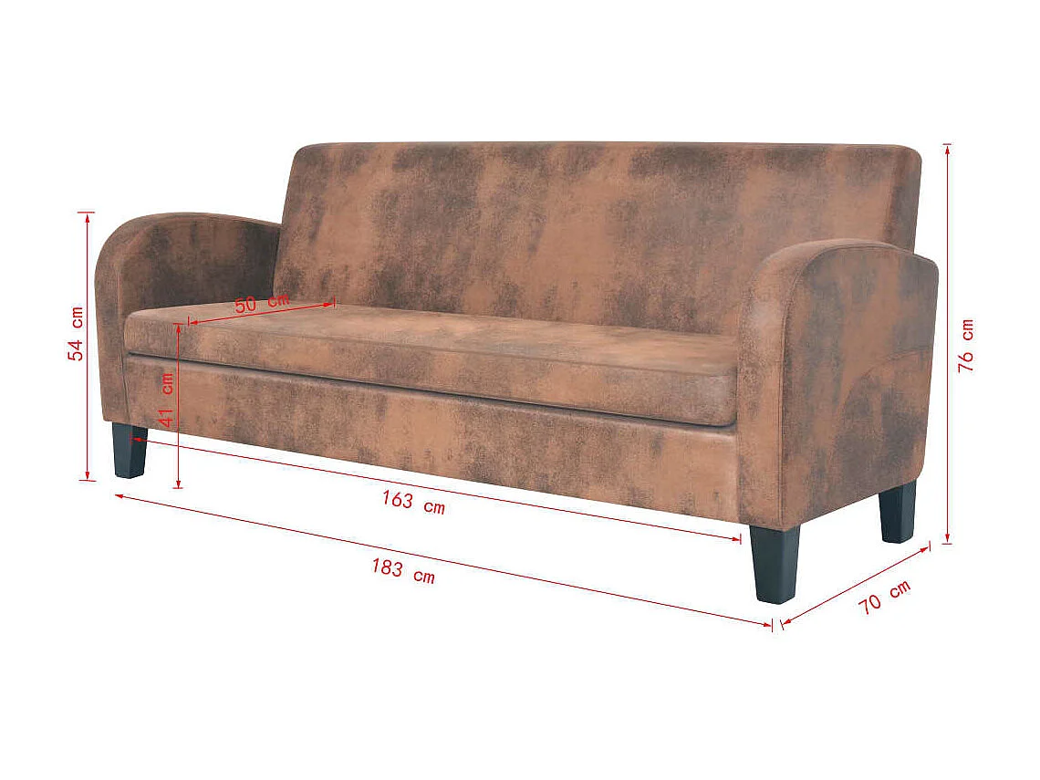 NETTLIFE Canapé à 3 places Daim synthétique Marron