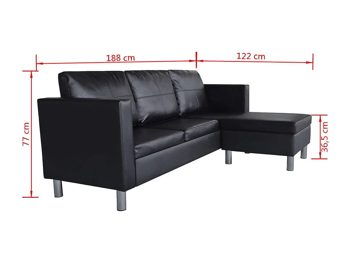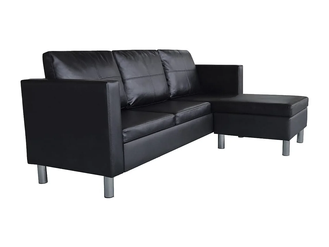 NETTLIFE Canapé sectionnel à 3 places Cuir synthétique Noir