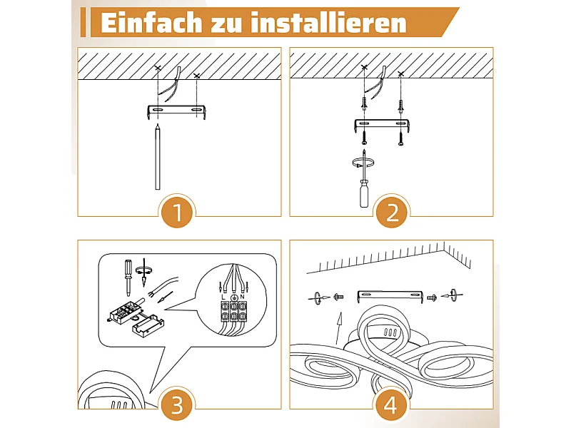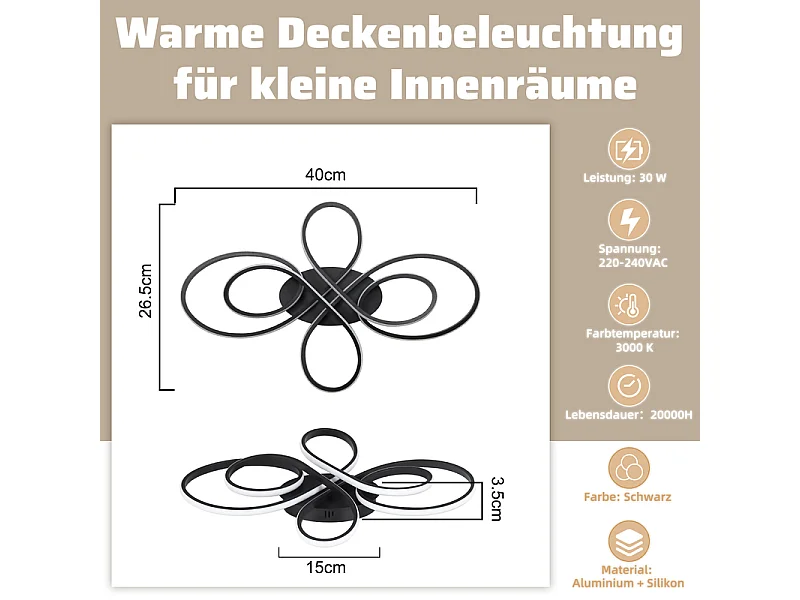NETTLIFE Plafonnier chambre LED plafonnier salon : 30W lampe de salon noir 40cm 3000K