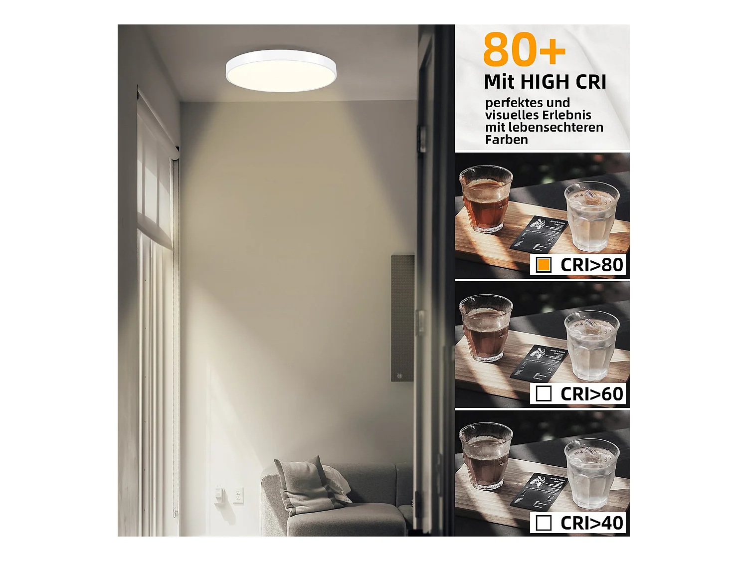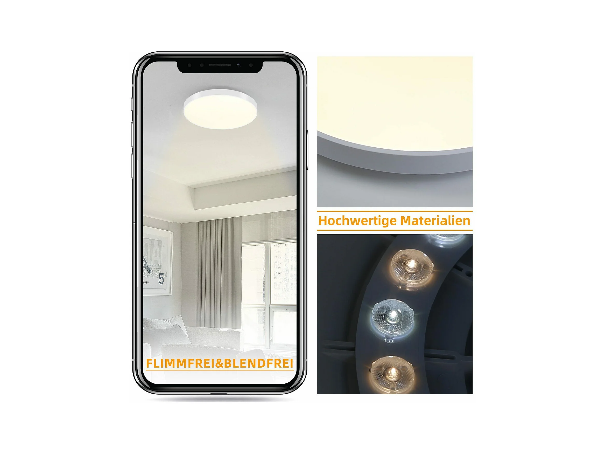 NETTLIFE Plafonnier LED Blanc Chaud Plafonnier - Lampe de Salle de Bain 12W IP44 Etanche 21cm Lampe de Cuisine Moderne Ronde Plate
