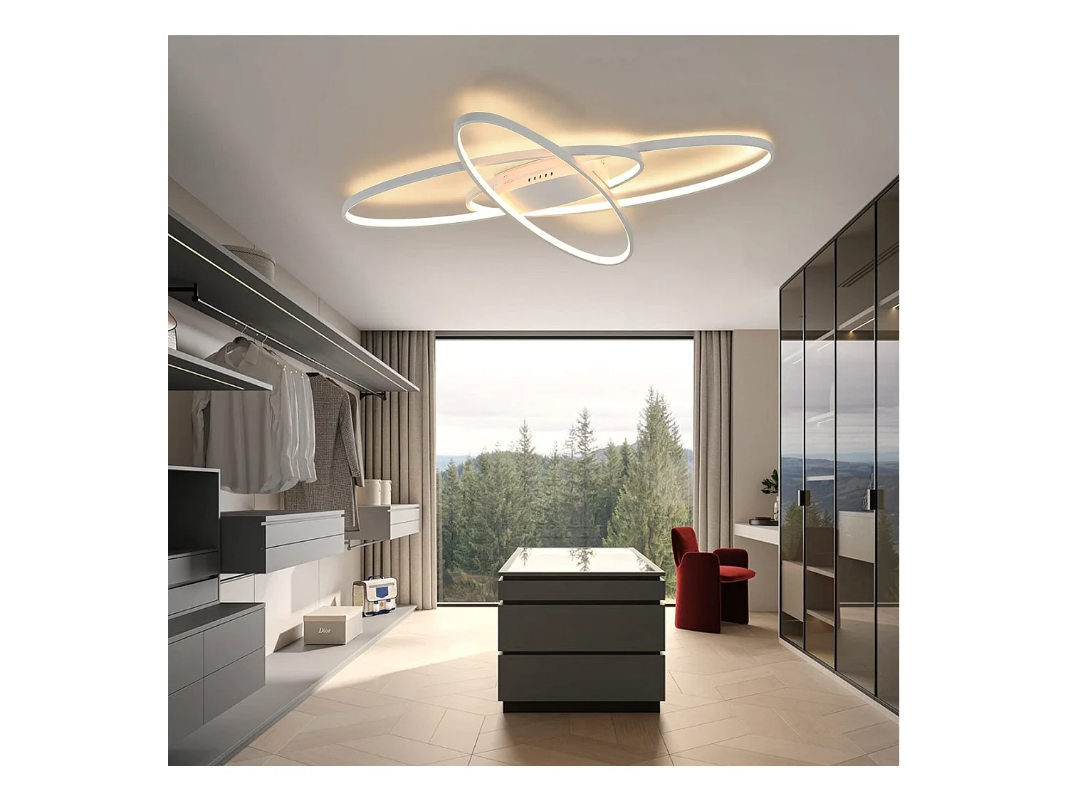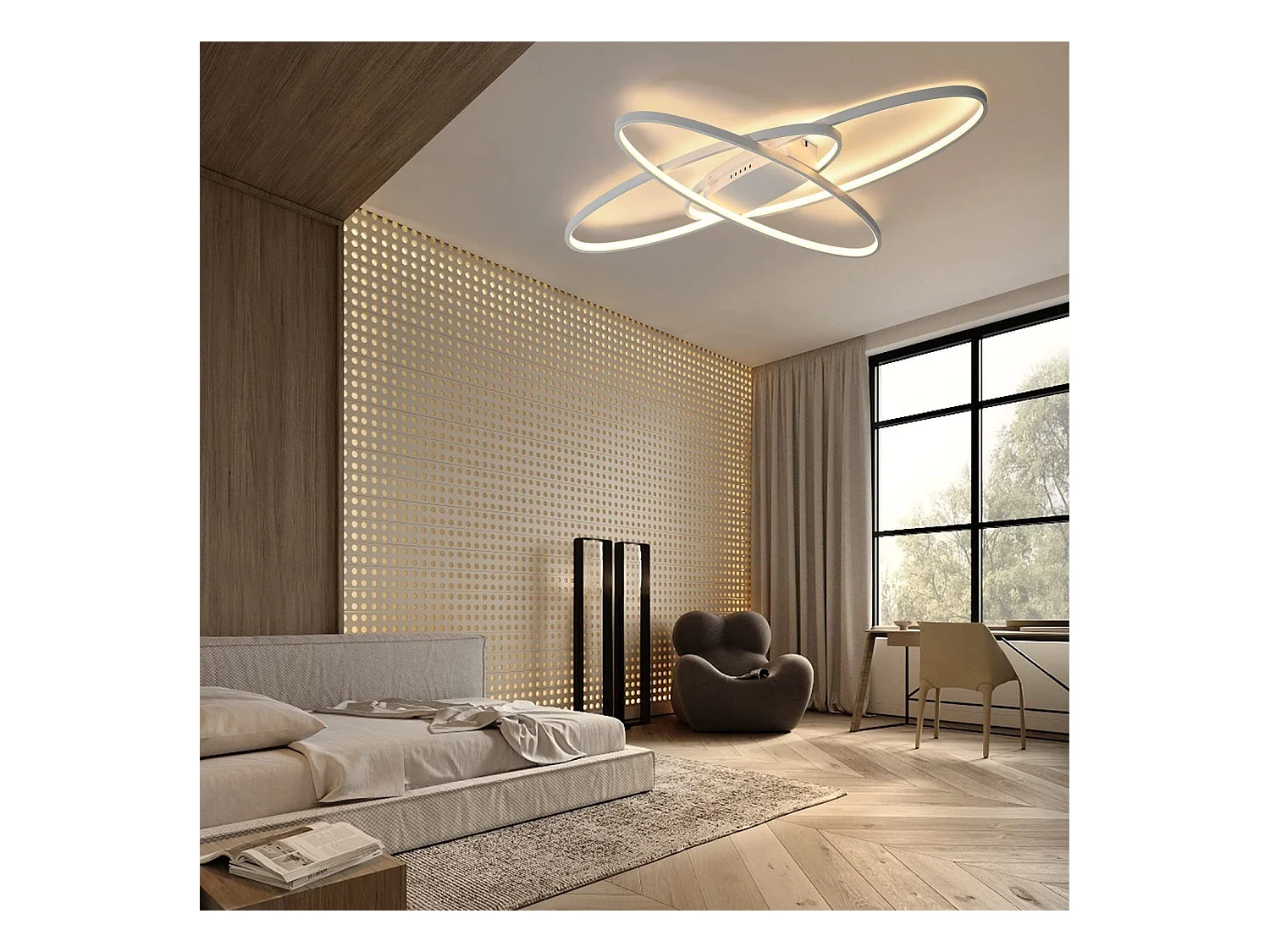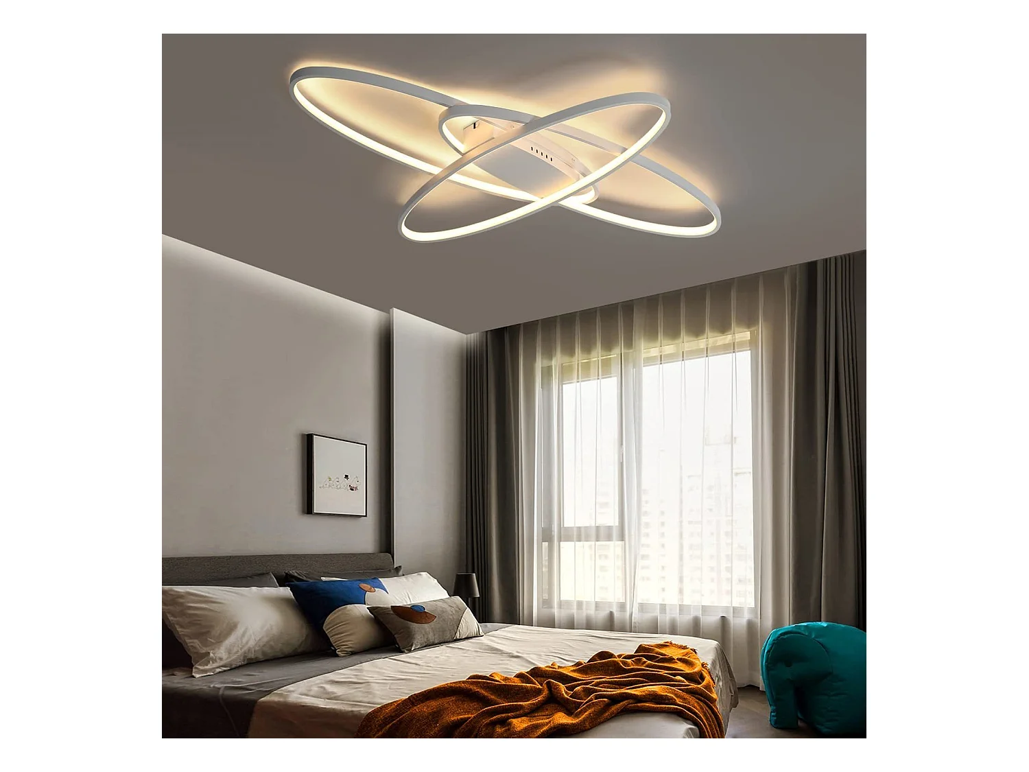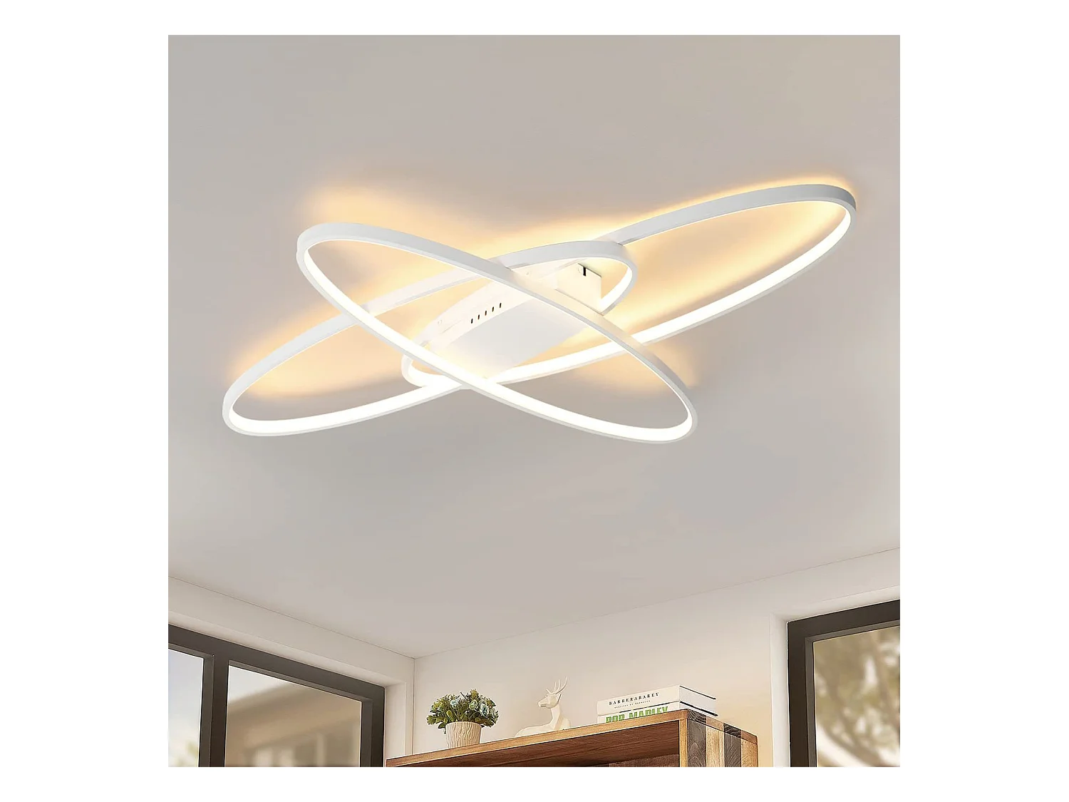 NETTLIFE Plafonnier LED Dimmable Lampe Moderne Lampe de Chambre Blanche avec Télécommande 75 W Design Intérieur pour Salon Cuisine Bureau d'étude