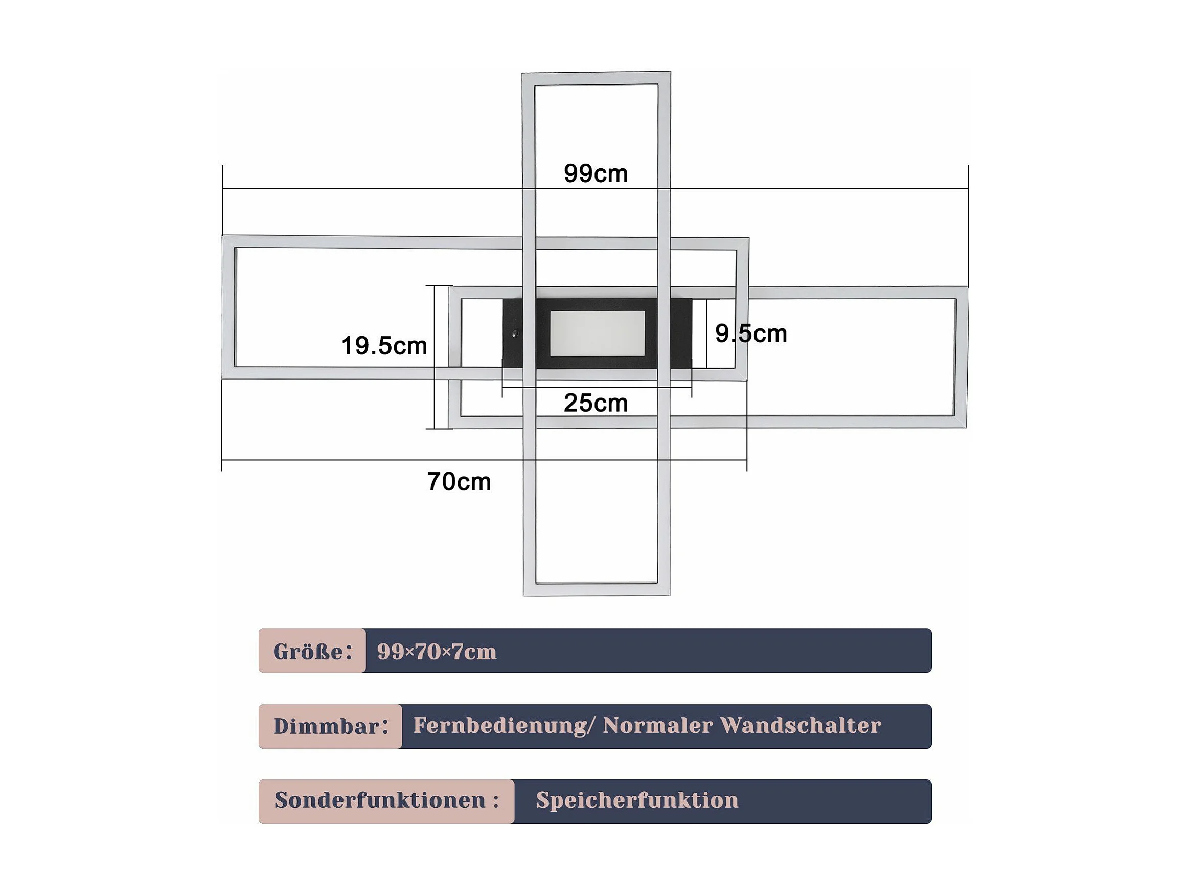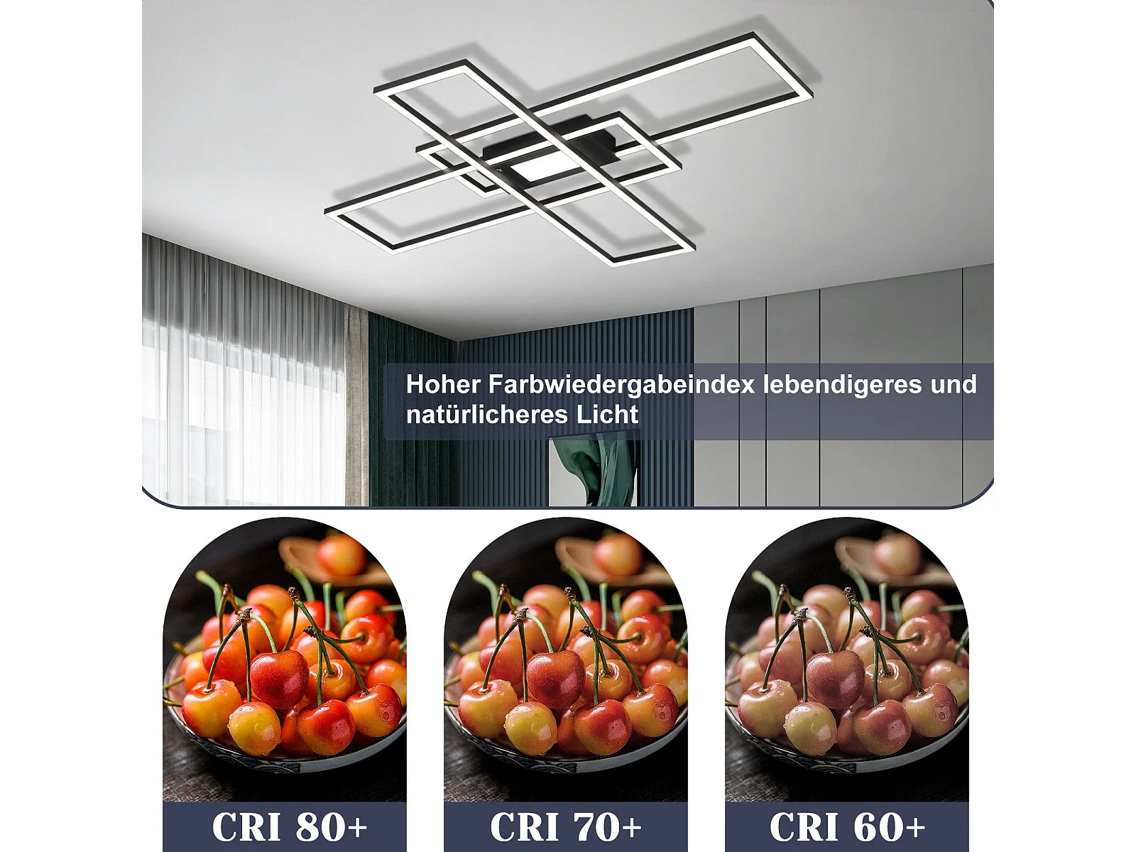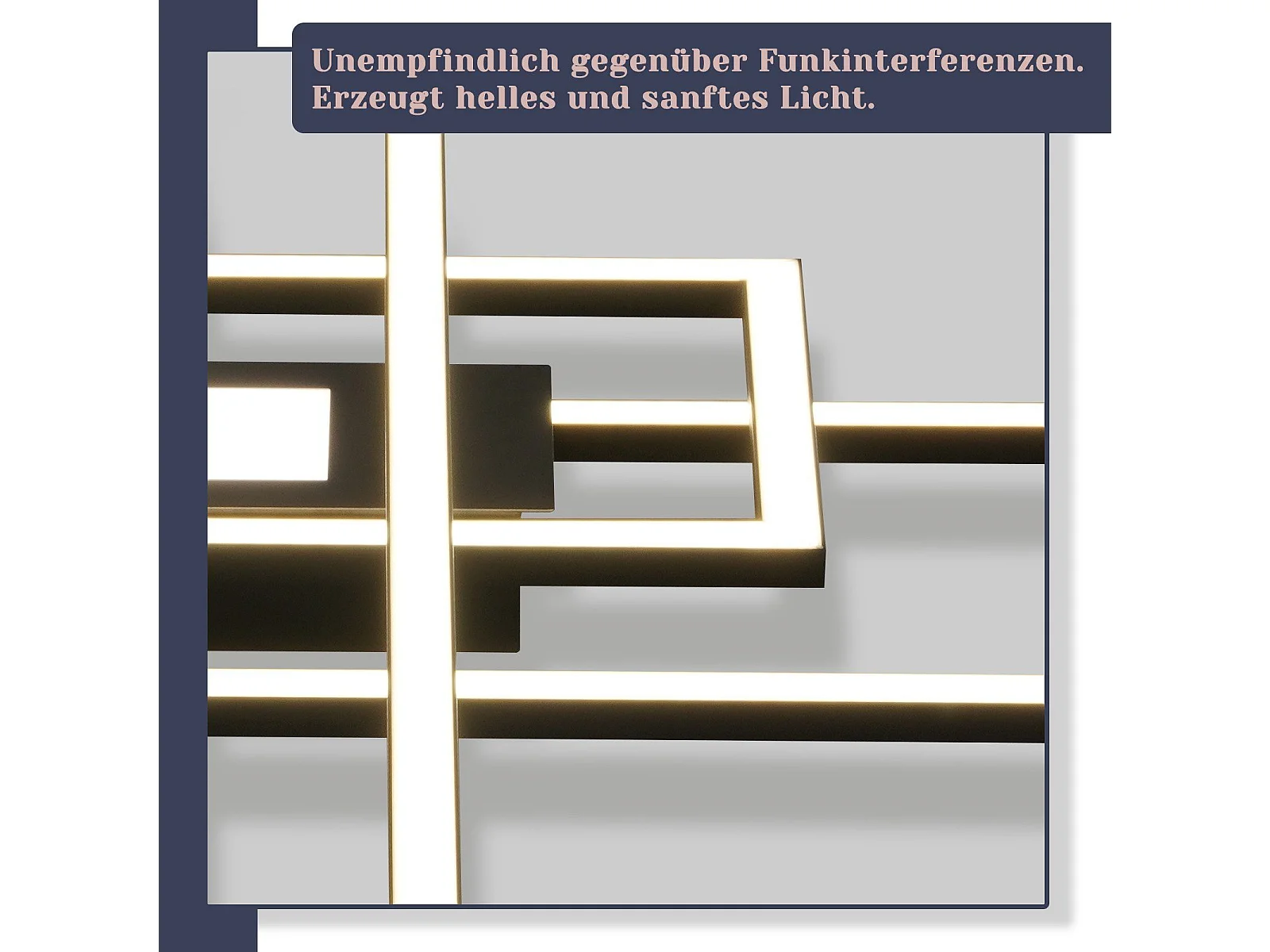 NETTLIFE Plafonnier LED Lampe de Salon Noir Lampe de Chambre 50 W Moderne Dimmable avec Télécommande Géométrique pour Cuisine Couloir Salle à Manger