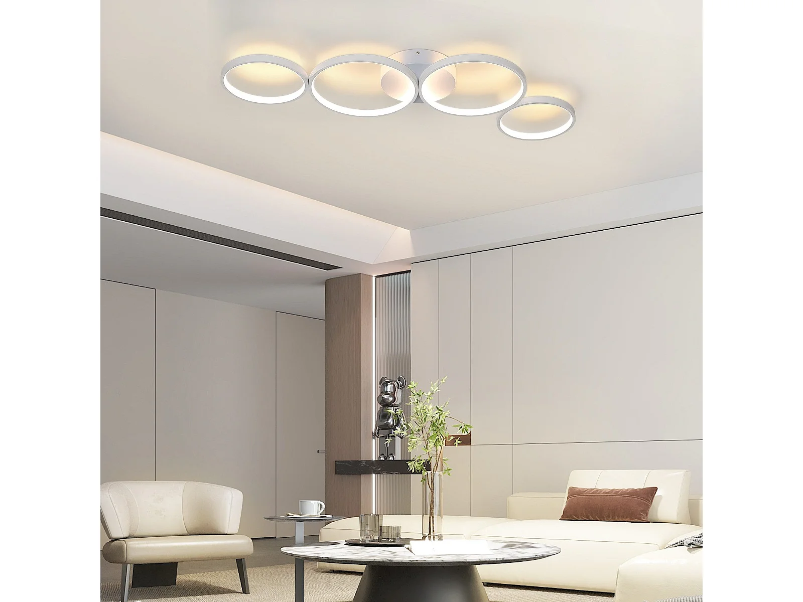 NETTLIFE Plafonnier LED Plafonnier 100cm Dimmable 4 Anneaux Moderne 56w Éclairage Blanc Avec Télécommande