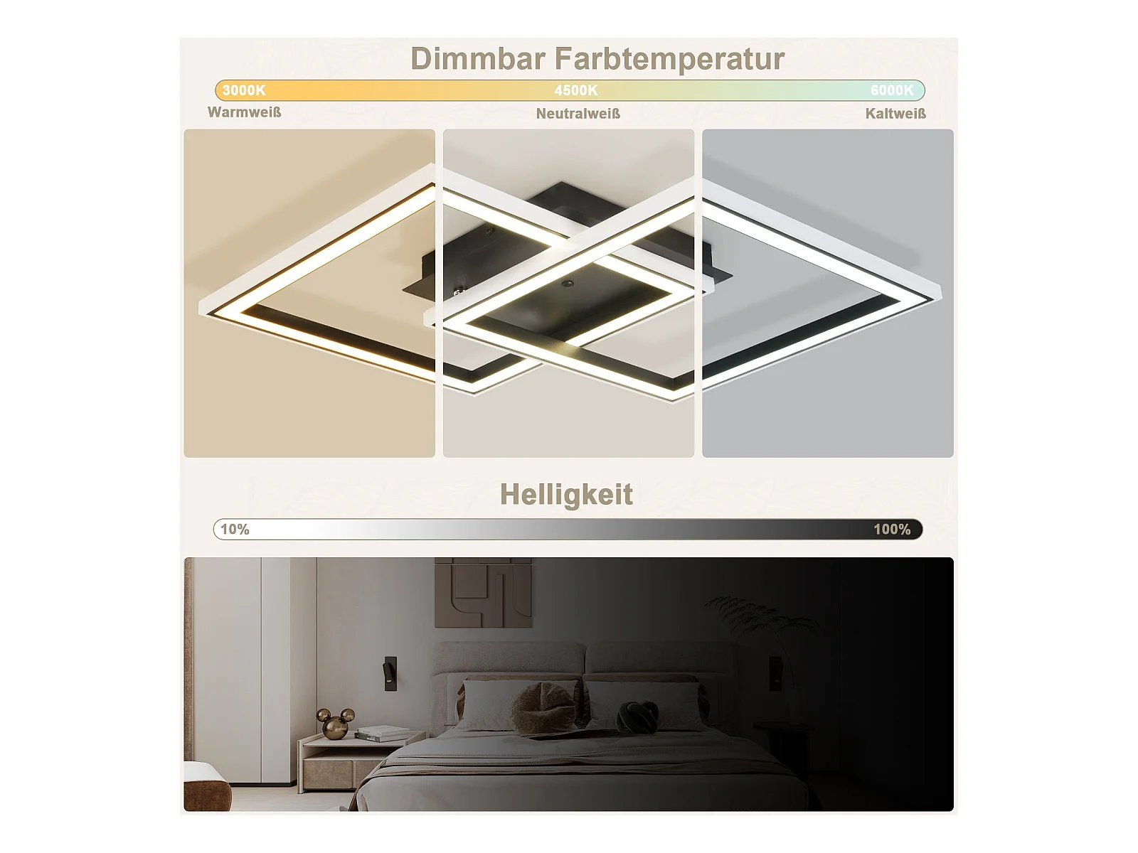 NETTLIFE Plafonnier LED pour salon, intensité variable, moderne, RGB, avec télécommande, 3 000-6 000 K, RGB moderne 13