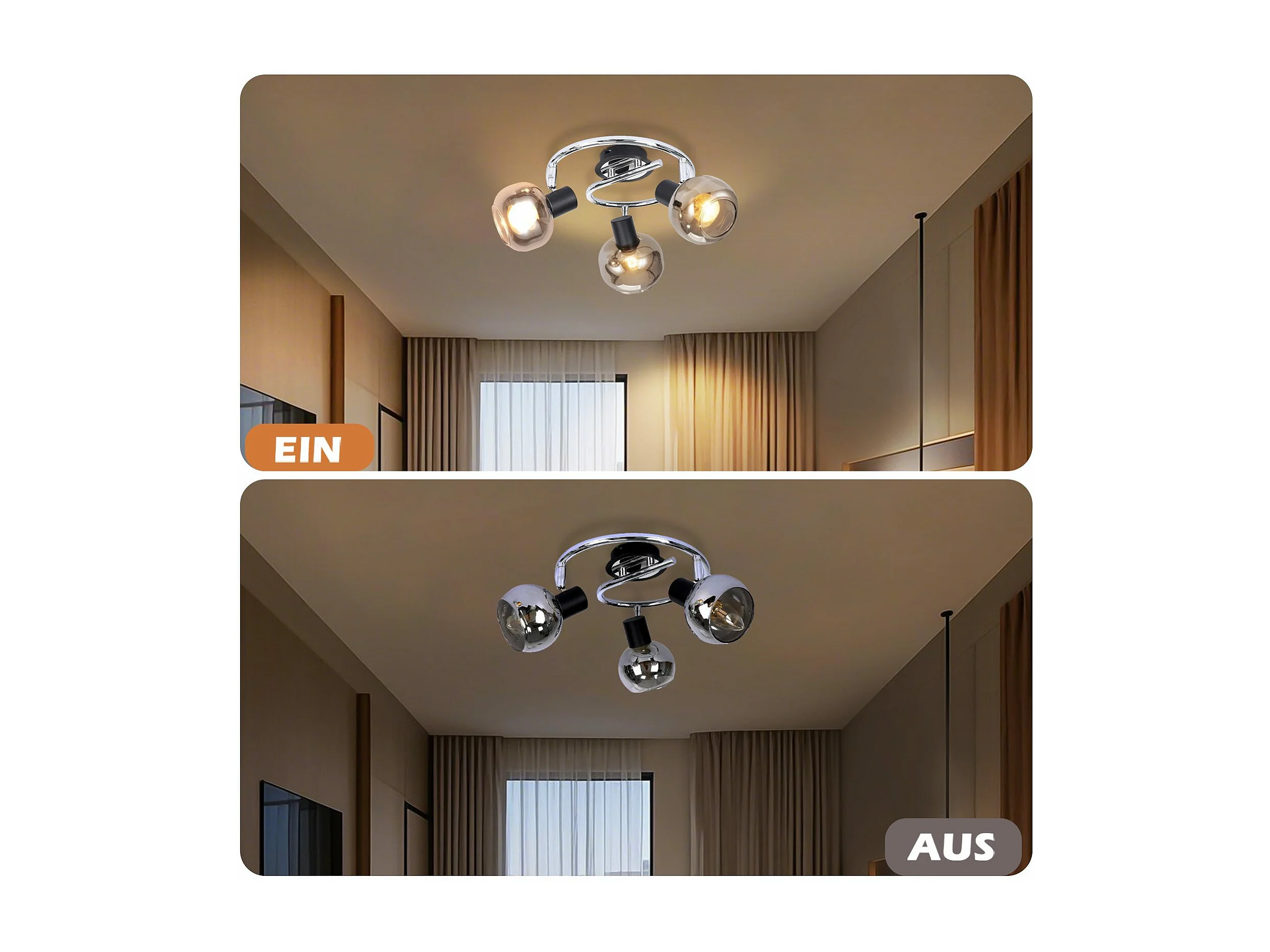 NETTLIFE Plafonnier Spot E14 Moderne Verre Fumé 3 Flammes Plafonnier Pivotant 350° Pivotant