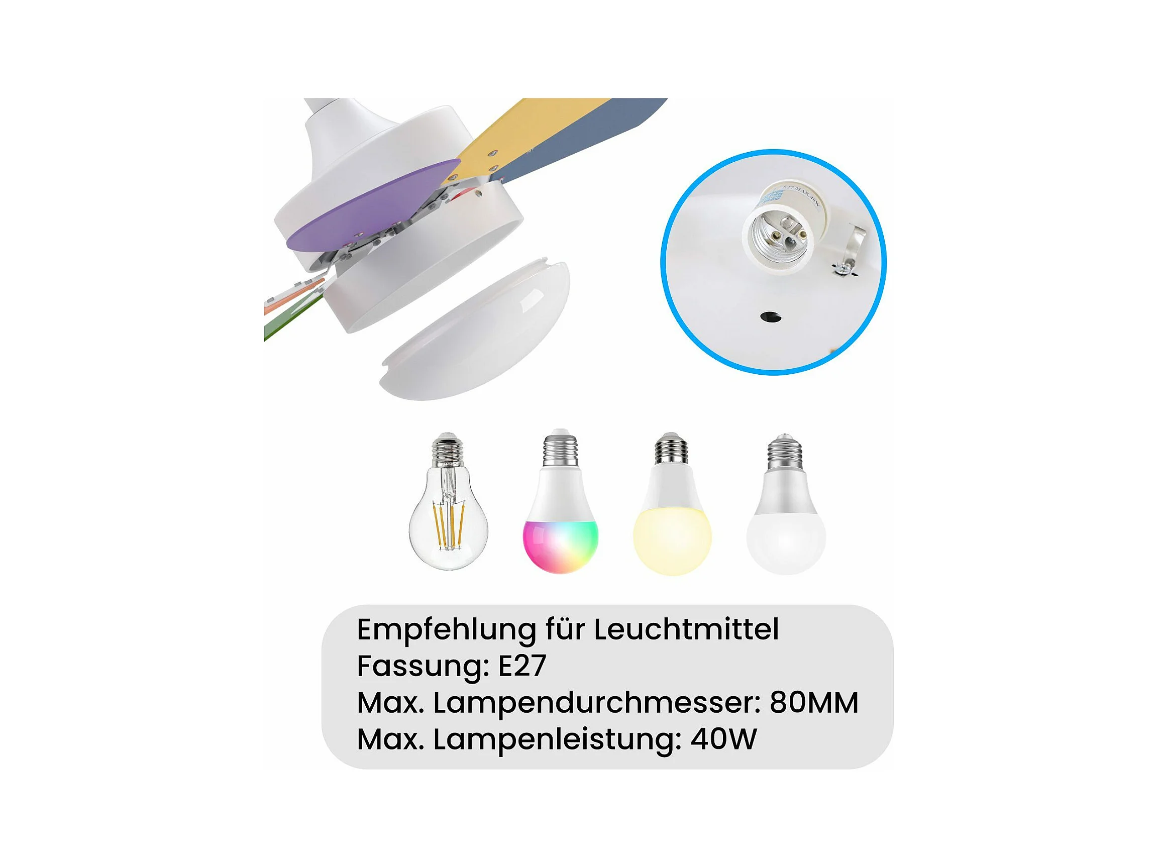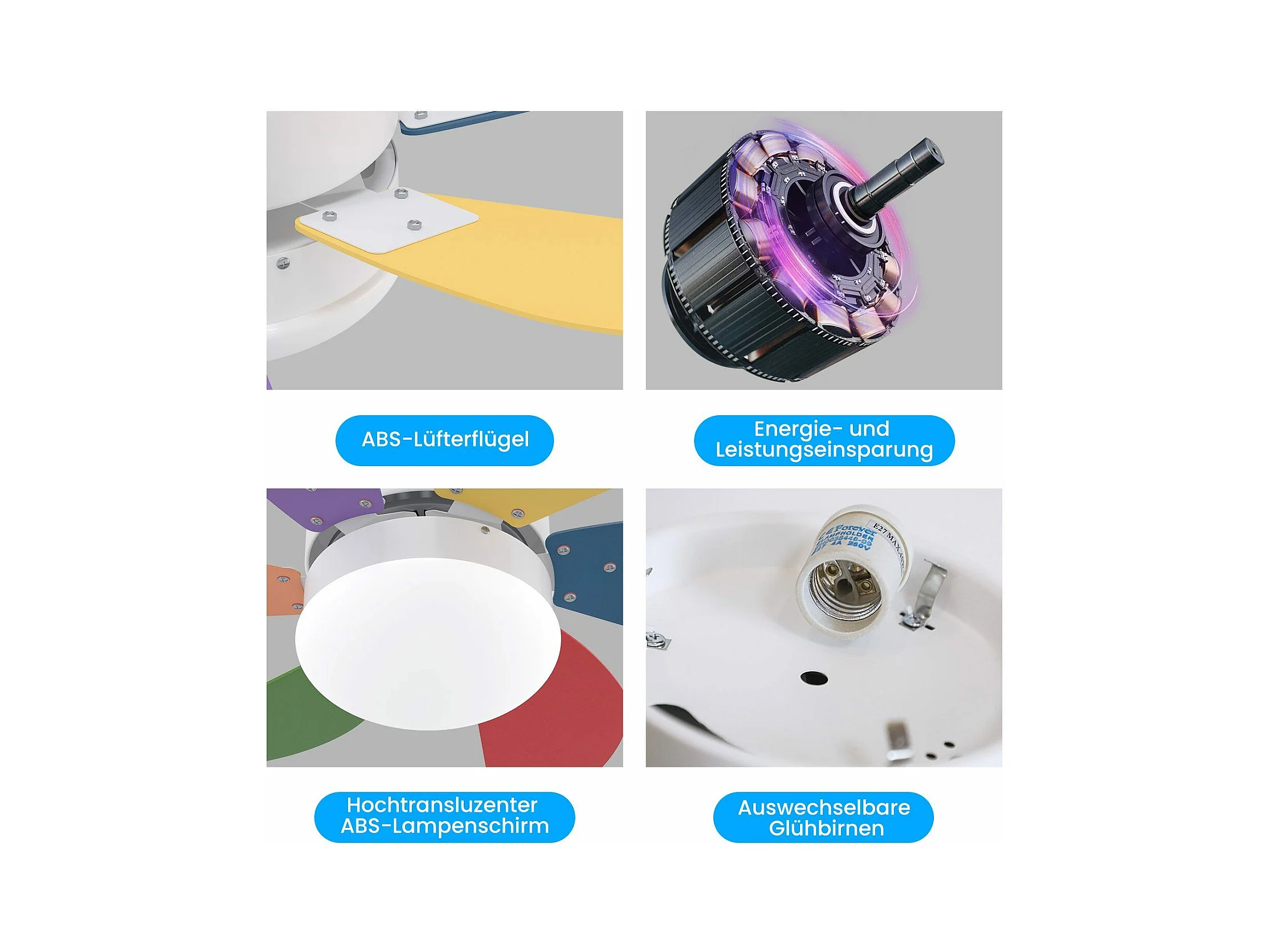 NETTLIFE Ventilateur de plafond blanc avec éclairage, télécommande, silencieux, avec minuterie, 6 pales, pour chambre à coucher