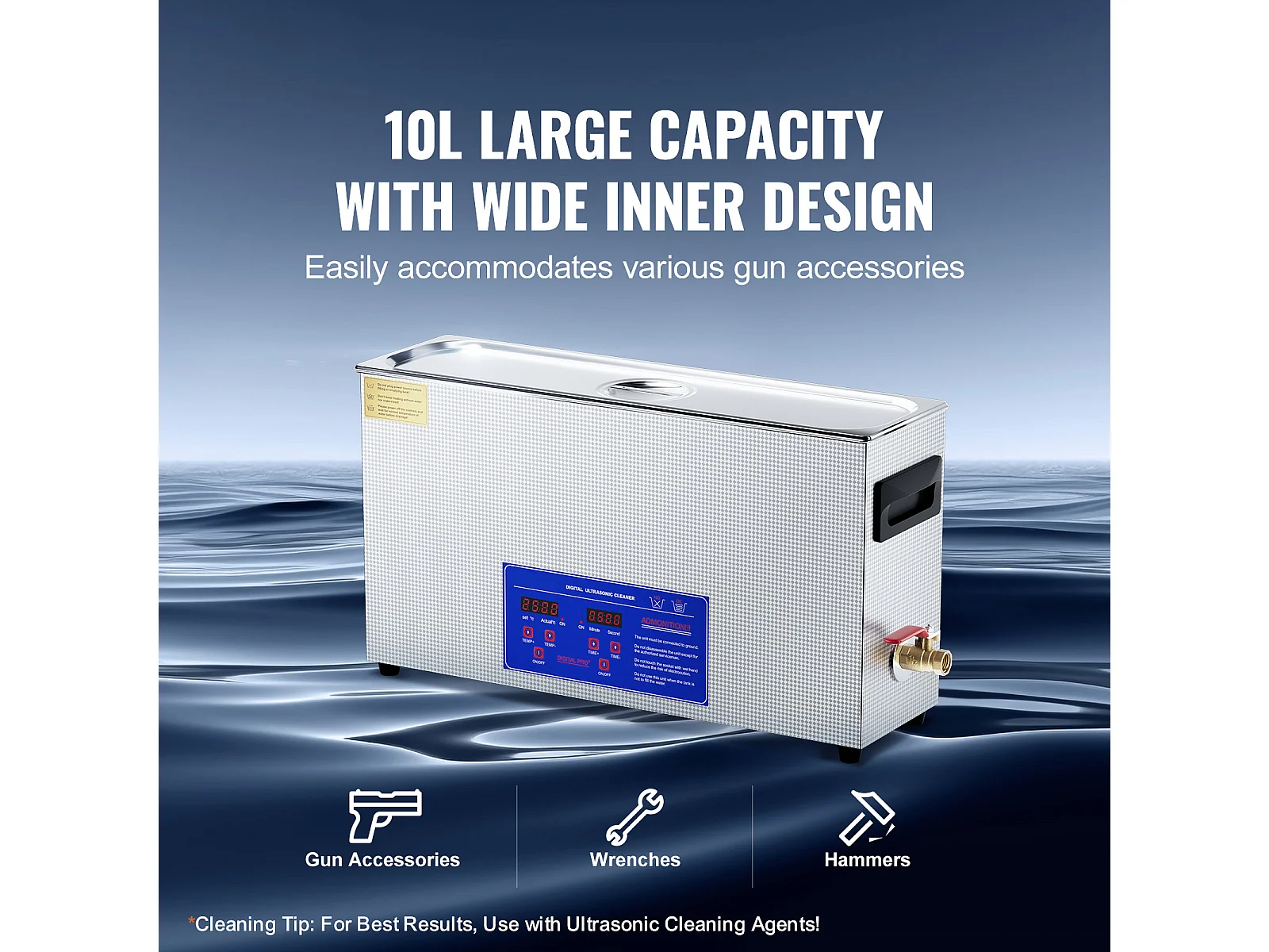 Nettoyeur à Ultrasons, SucceBuy Nettoyeur à Ultrasons pour Pistolet 10 L, Minuterie 300 W, Chauffage et Panier