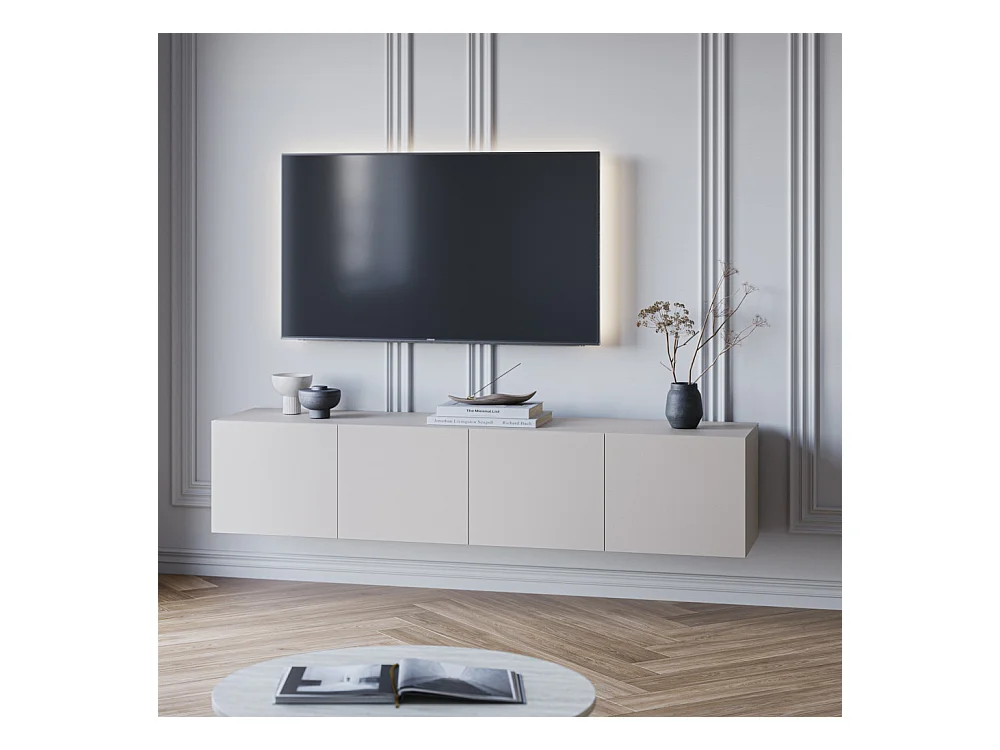 Nexa - Meuble TV suspendu 4 portes en bois L180cm - Beige