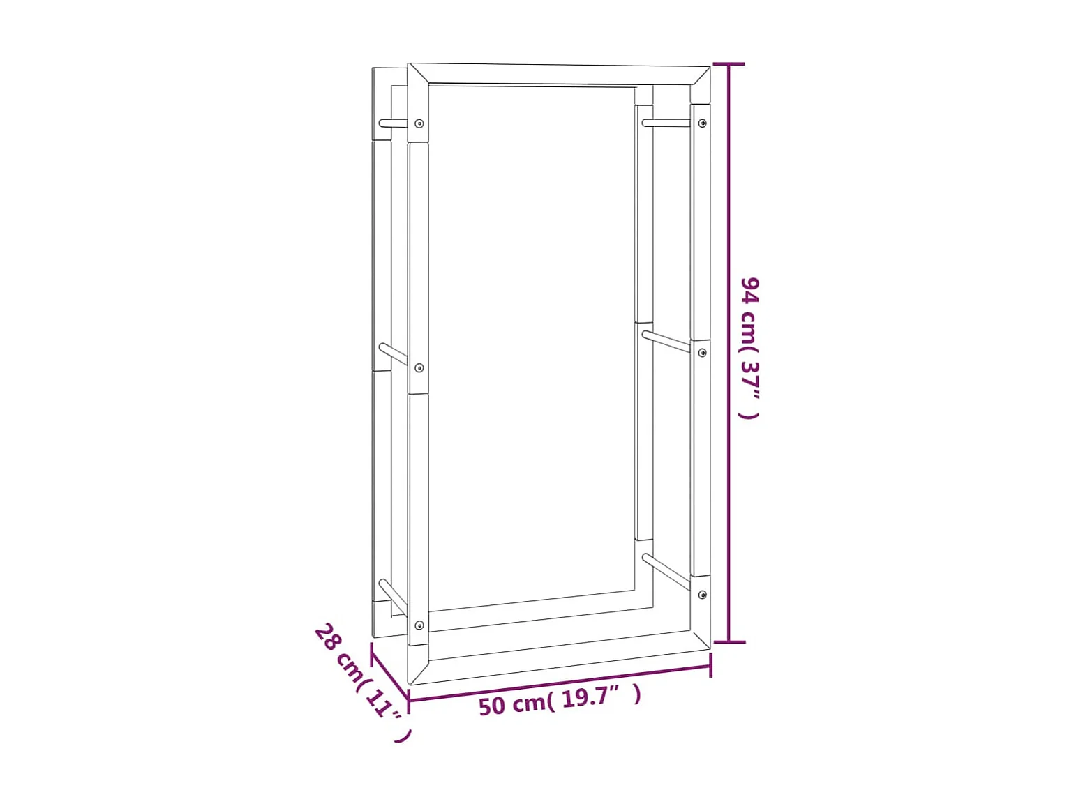 Nichelino Portant de bois de chauffage Noir mat 50x28x94 cm Acier