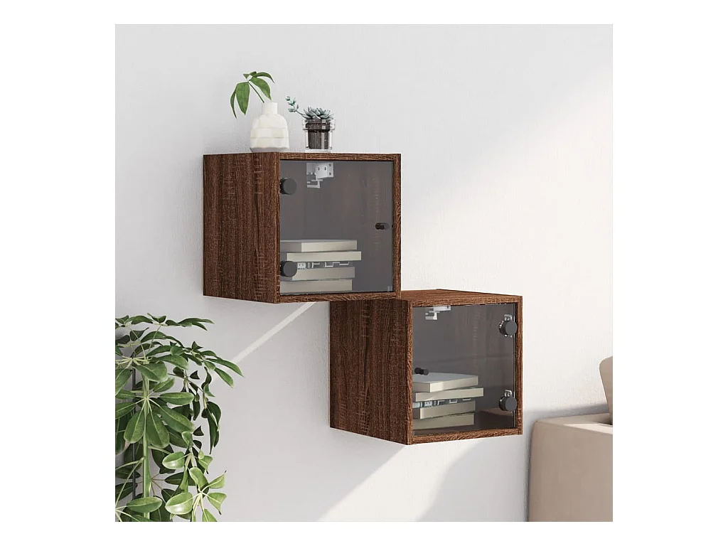 Nihat Tables de chevet et portes vitrées 2pcs chêne marron 35x37x35cm