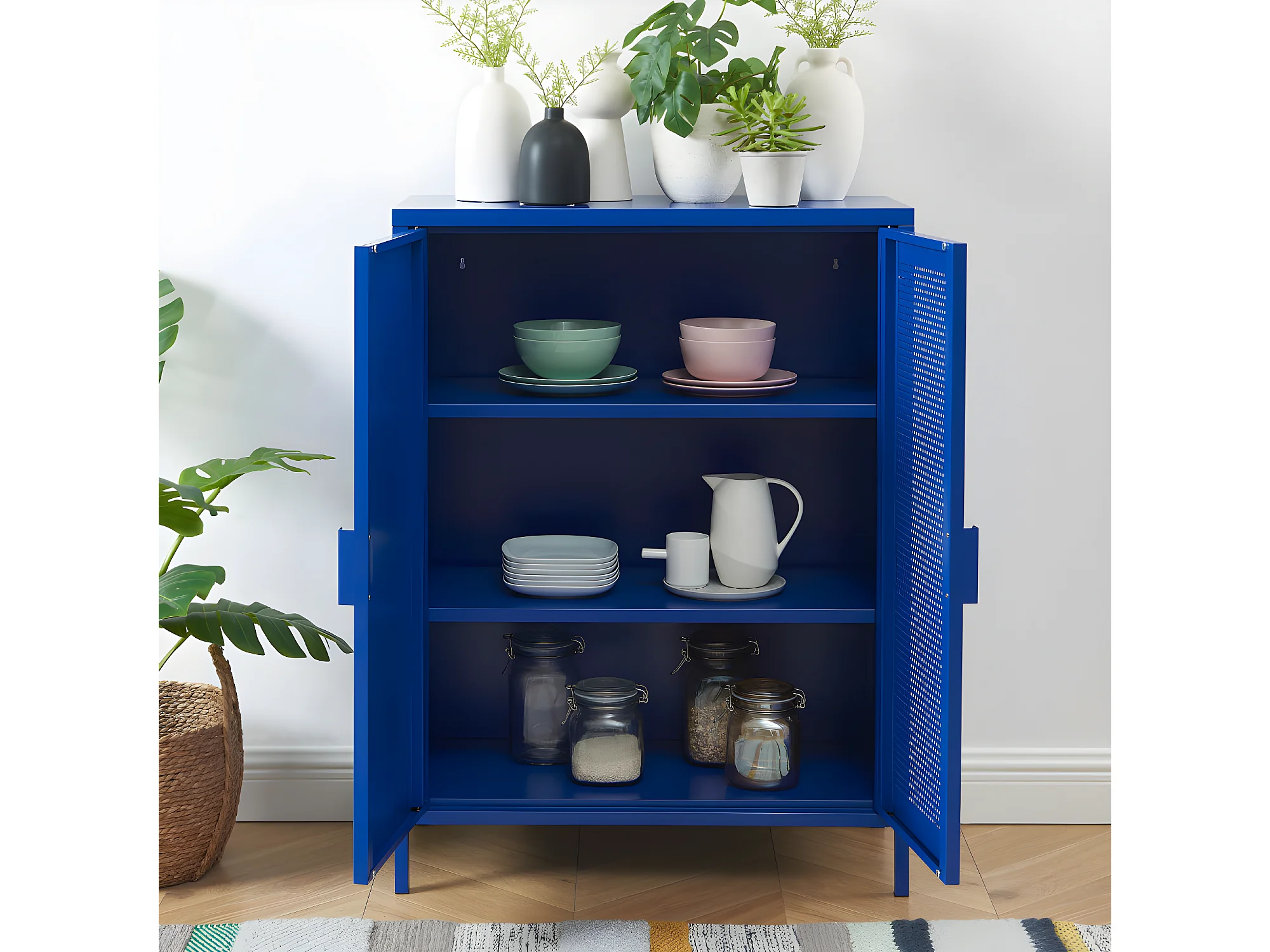 Nino - Buffet haut 2 portes en métal PANTONE H100cm - Bleu électrique