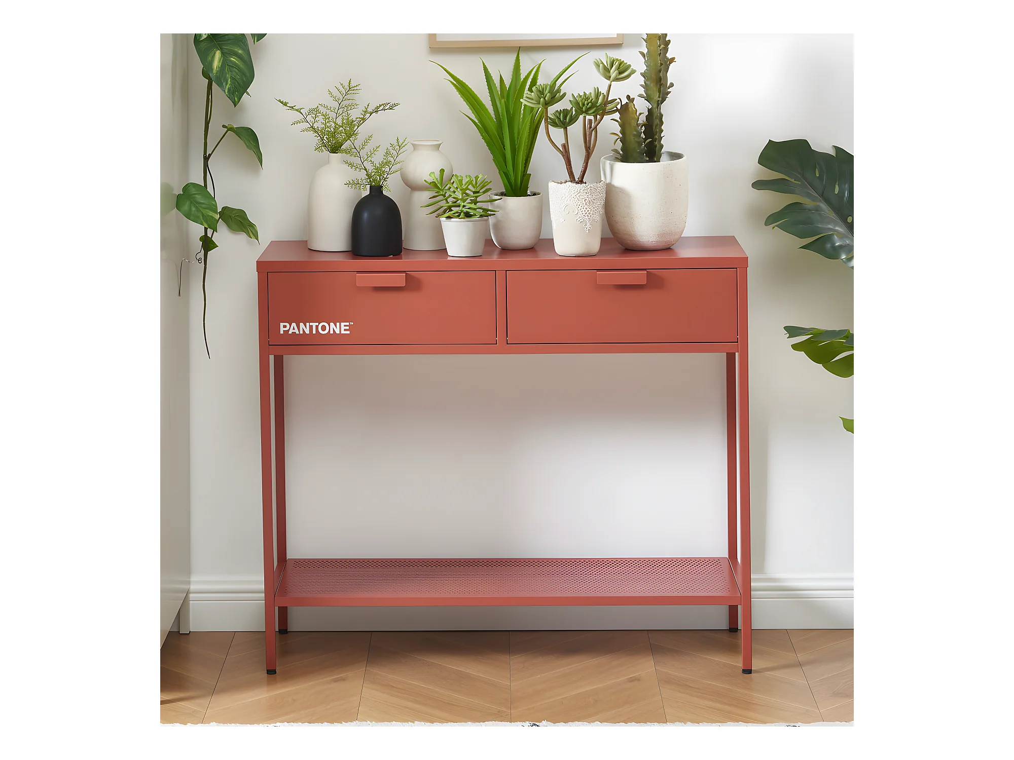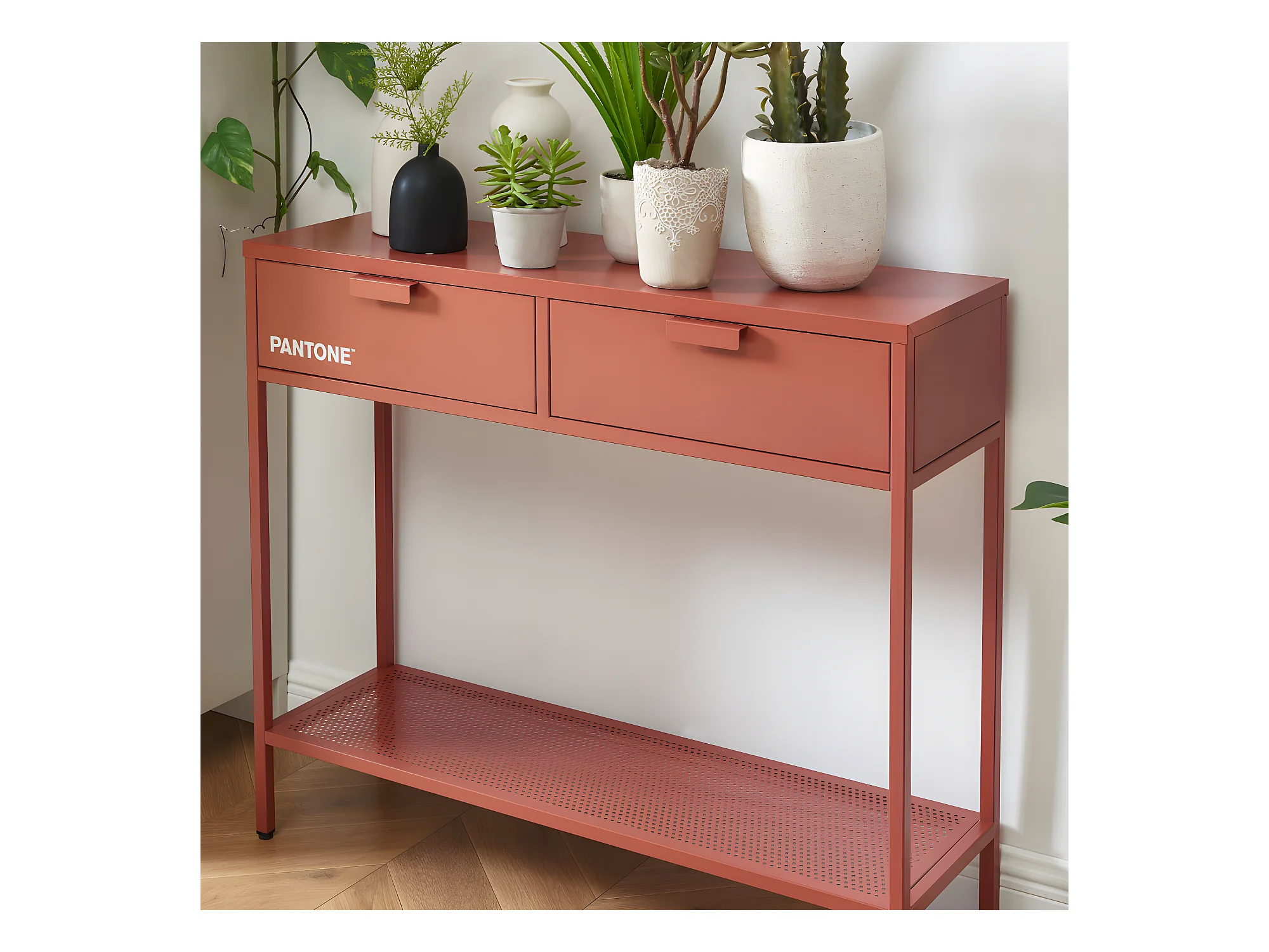 Nino - Console 2 tiroirs en métal PANTONE L100cm - Terracotta