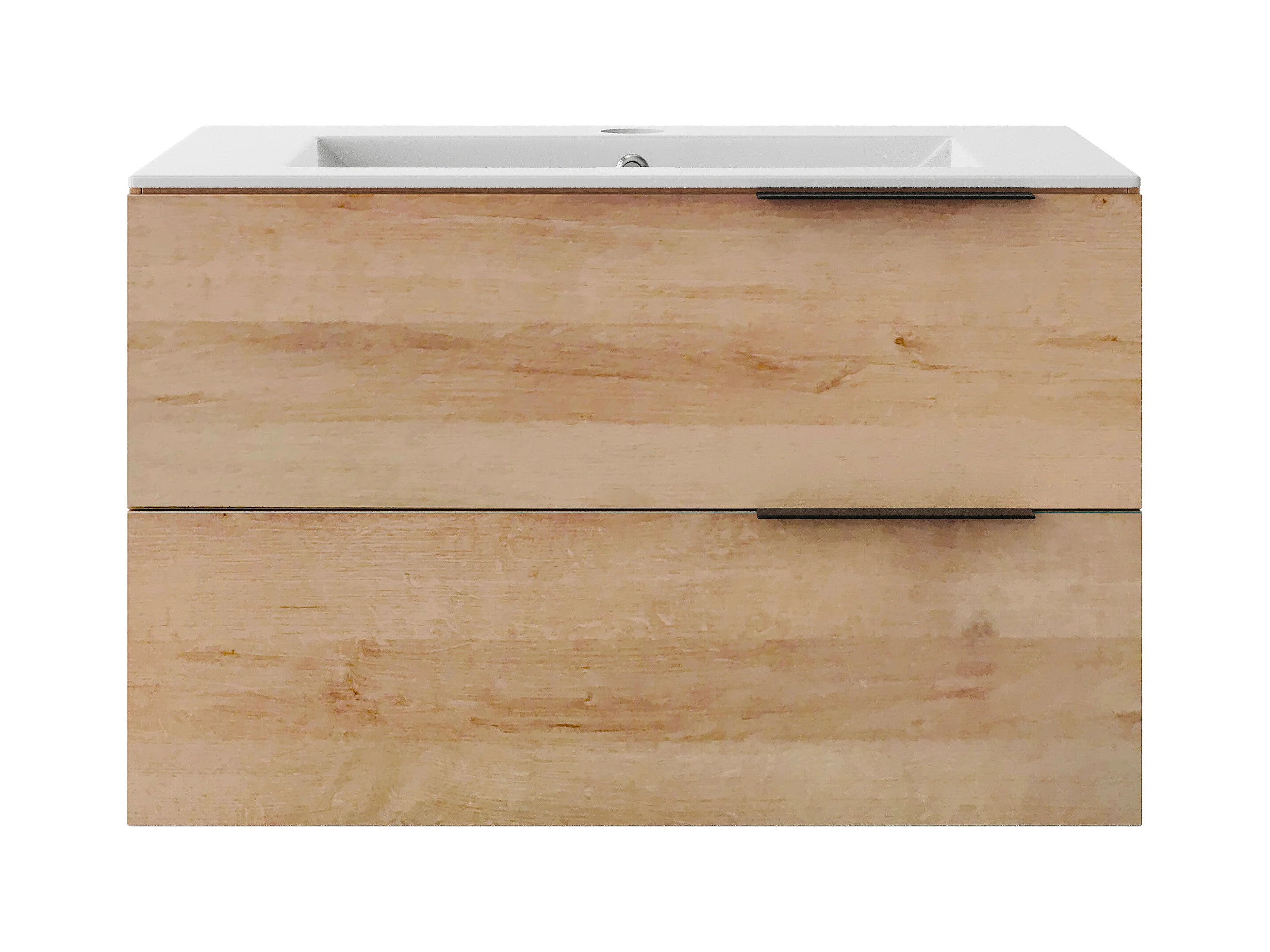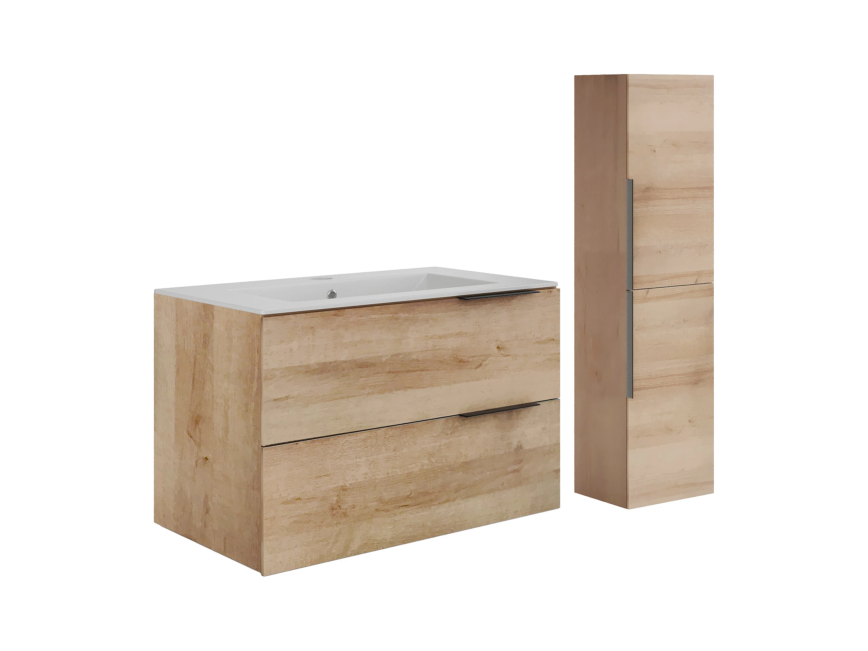 Meuble de salle de bain suspendu avec vasque à encastrer et colonne - Naturel clair - 80 cm - NISAYA