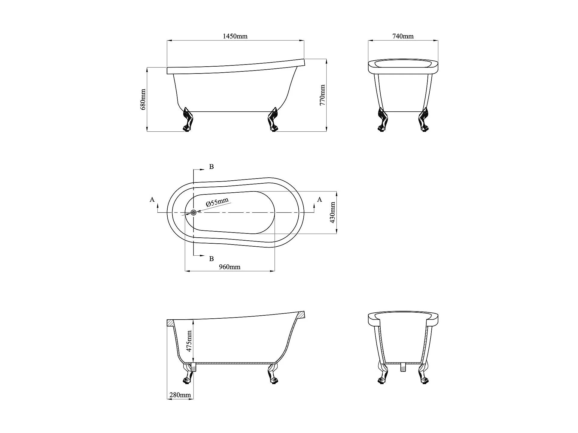 Baignoire îlot rétro avec pieds de lion blancs - 200 L - 145 x 74 x 77 cm - Bleu - NISOS II