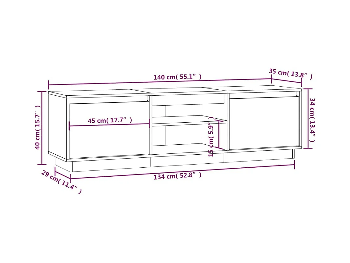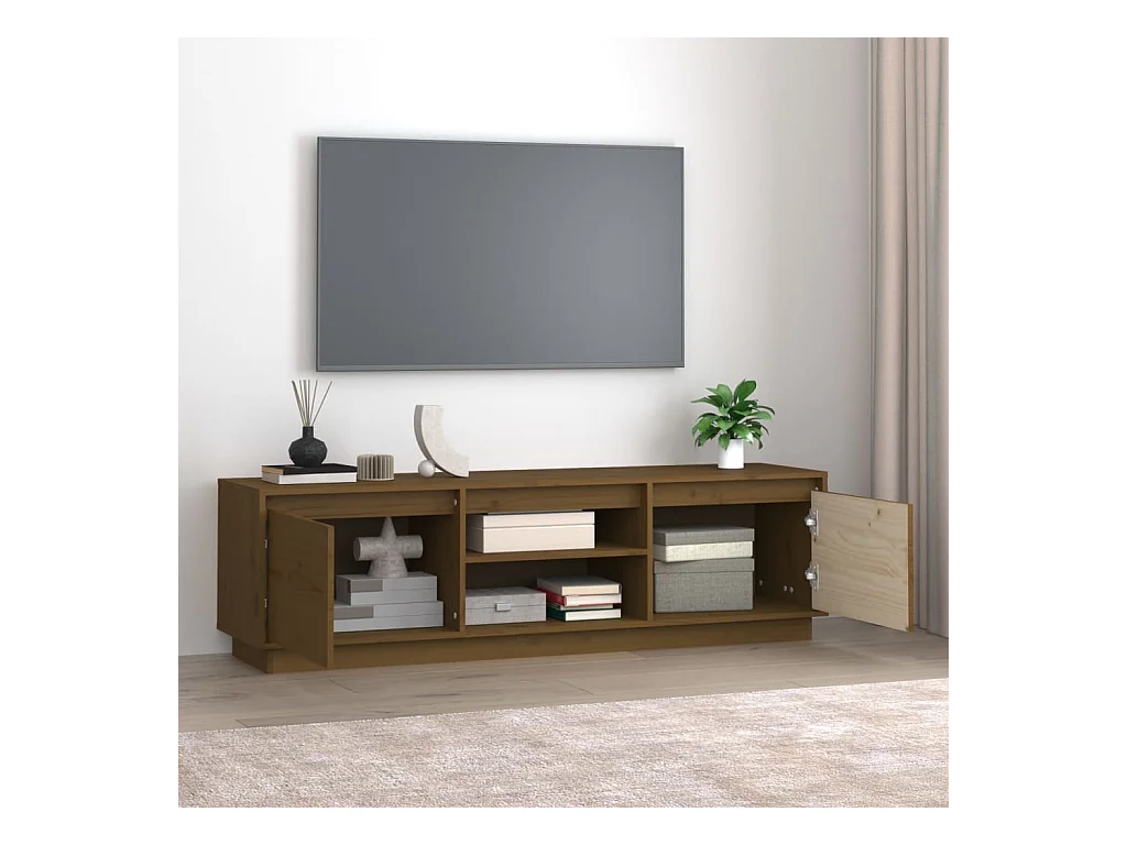 Njorir Meuble TV Marron miel 140x35x40 cm Bois de pin massif