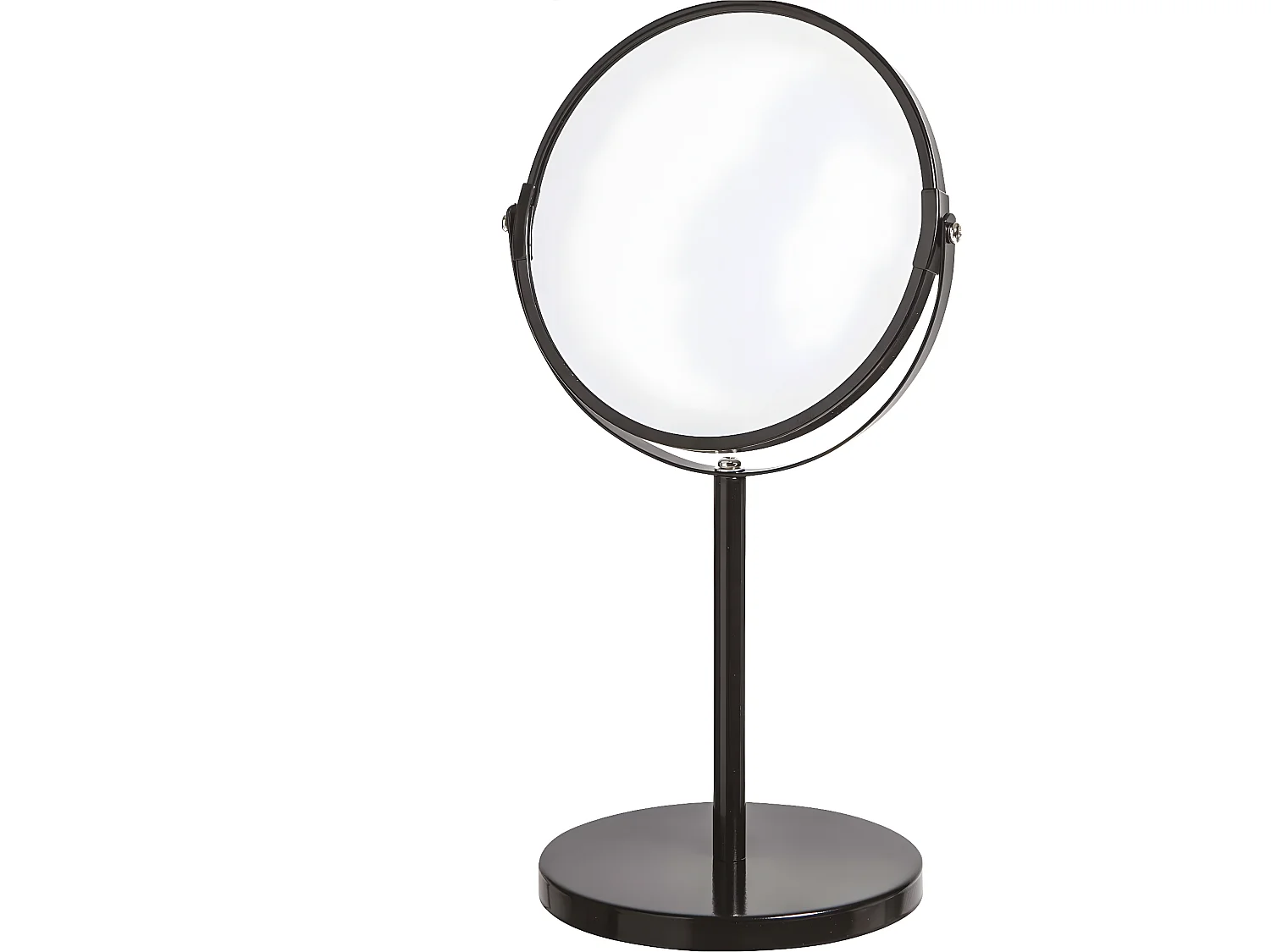 Miroir grossissant double face x2 sur pied en métal doré mat - Longueur 19 x Profondeur 15 x Hauteur 35 cm