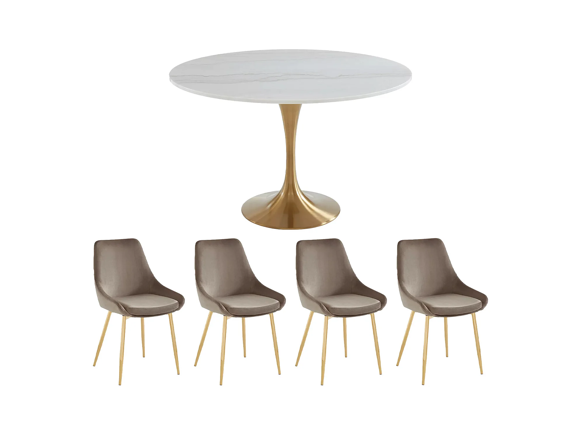 Ensemble table NORAH + 4 chaises MASURIE - Blanc et taupe