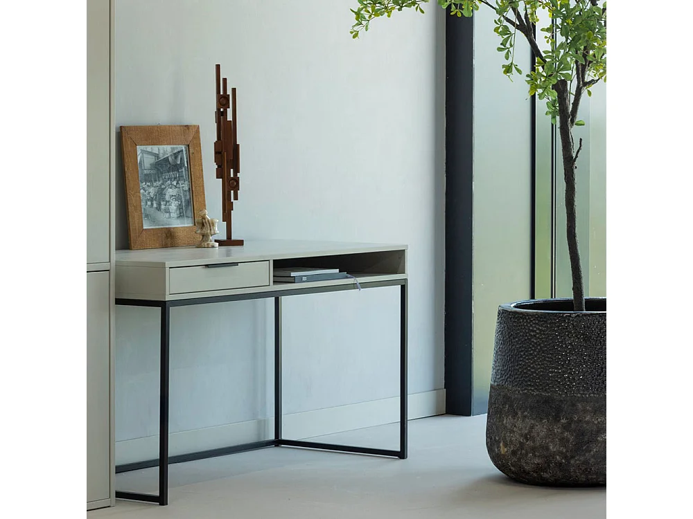 Nore - Bureau en bois et métal 1 tiroir L130cm - Beige